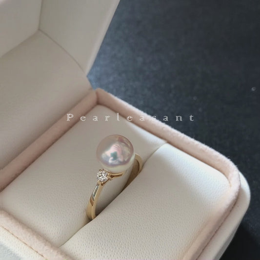 Hanadama Grade 8.0-8.5mm White Akoya Pearl Prong Setting Diamond Ring with Certificate (Pre-order)Regular price $1,048.00 USDRegular priceUnit price / per$1,048.00 USDSale price $1,048.00 USD