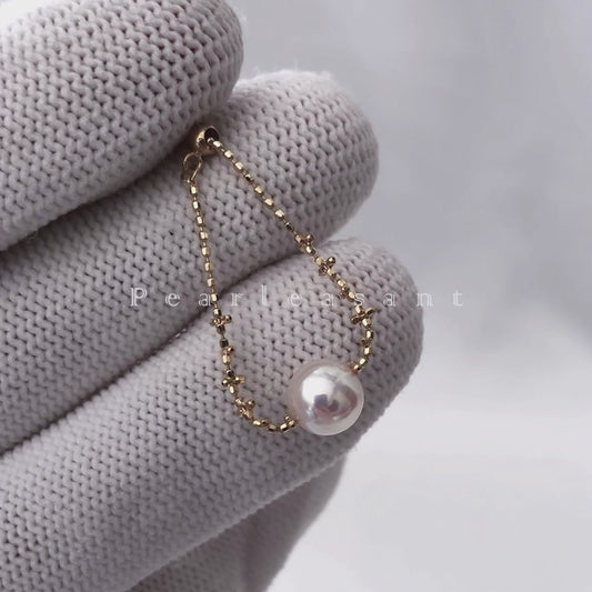 Hanadama Grade Super Luster 6.5-7.0mm White Akoya Pearl Adjustable Cross Chain Ring