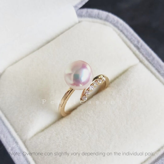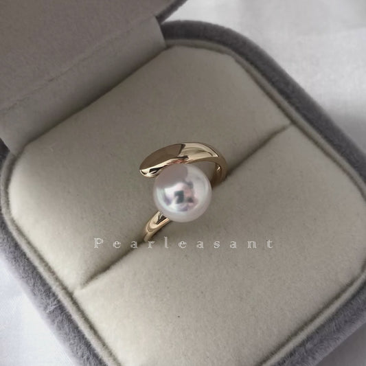 Hanadama Grade 8.5-9.0mm White Akoya Pearl Embrace Ring with Certificate (Pre-order)