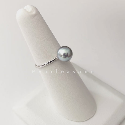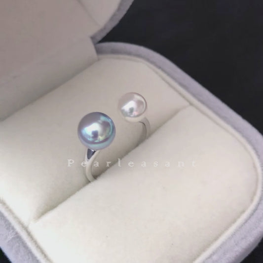 Madama Blue and White Bicolor 5-star Grade Akoya Pearl Essential Ring (Pre-order)