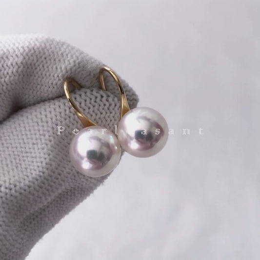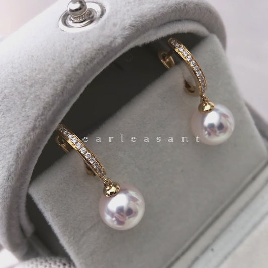 Hanadama Grade 8.5-9.0mm White Akoya Pearl Bucket Earrings with Certificate