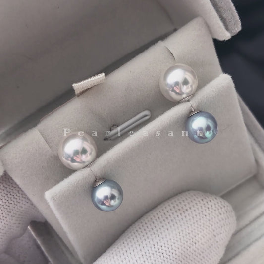 Madama Blue and Hanadama White Bicolor Akoya Pearl Double-ended Earring Studs with Certificate