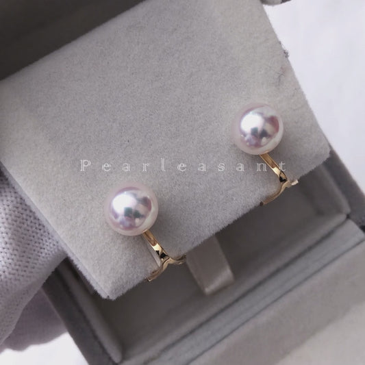 Hanadama Grade 8.0-9.0mm White Akoya Pearl Earring Clips with Certificate
