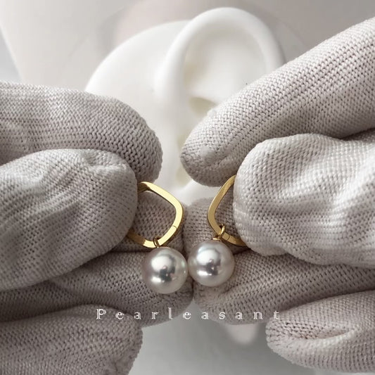 Hanadama Grade 8.0-9.0mm White Akoya Pearl Square Earrings with Certificate