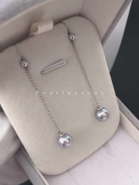 Madama Color 5-star Grade 7.5-8.0mm Blue Akoya Pearl Detachable Thread Earrings with Certificate