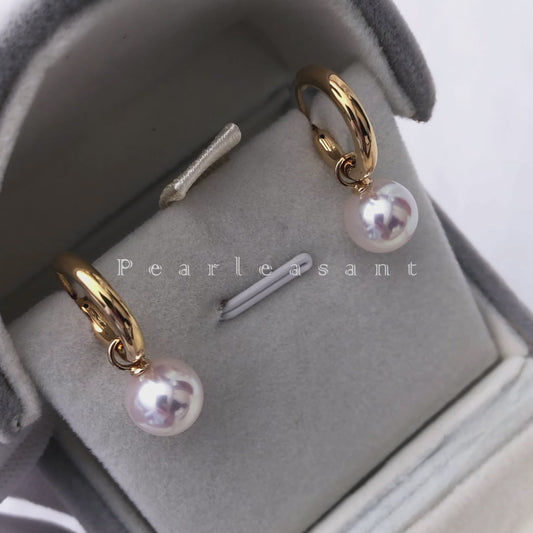 Hanadama Grade 8.0-9.0mm White Akoya Pearl Detachable Hoop Earrings with Certificate
