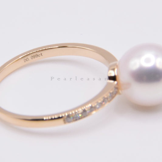 Hanadama Grade 8.0-8.5mm White Akoya Pearl Prong Setting Diamond Ring with Certificate (Pre-order)