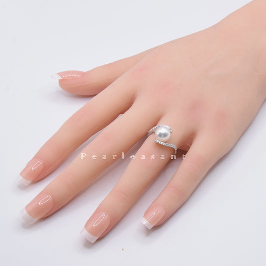 Sale Final - 8.5-9.0mm Natural White Akoya Pearl Embrace Silver Ring
