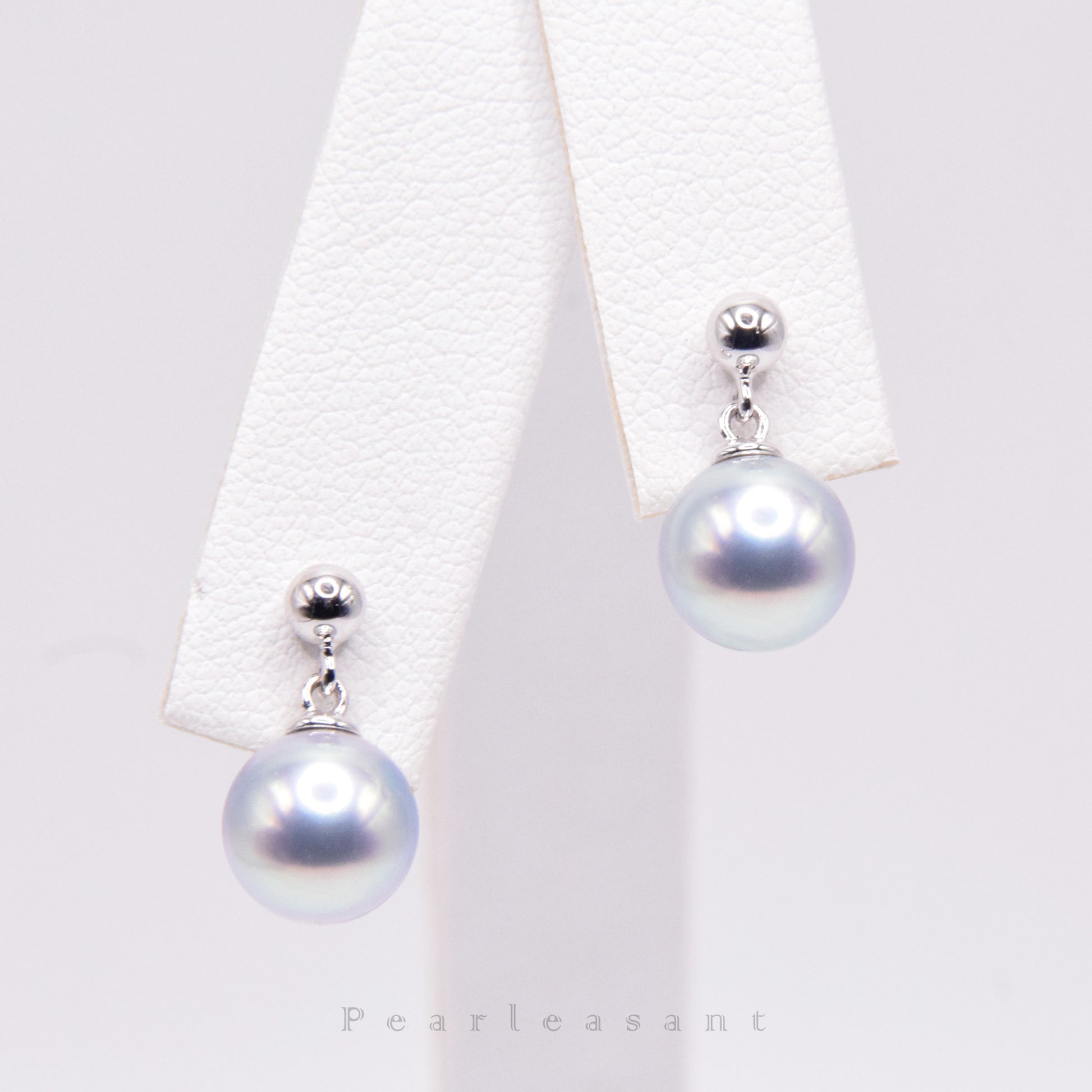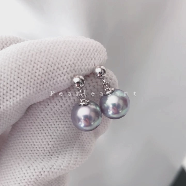 Madama Color 5-star Grade 7.5-8.0mm Blue Akoya Pearl Droplet Earrings with Certificate