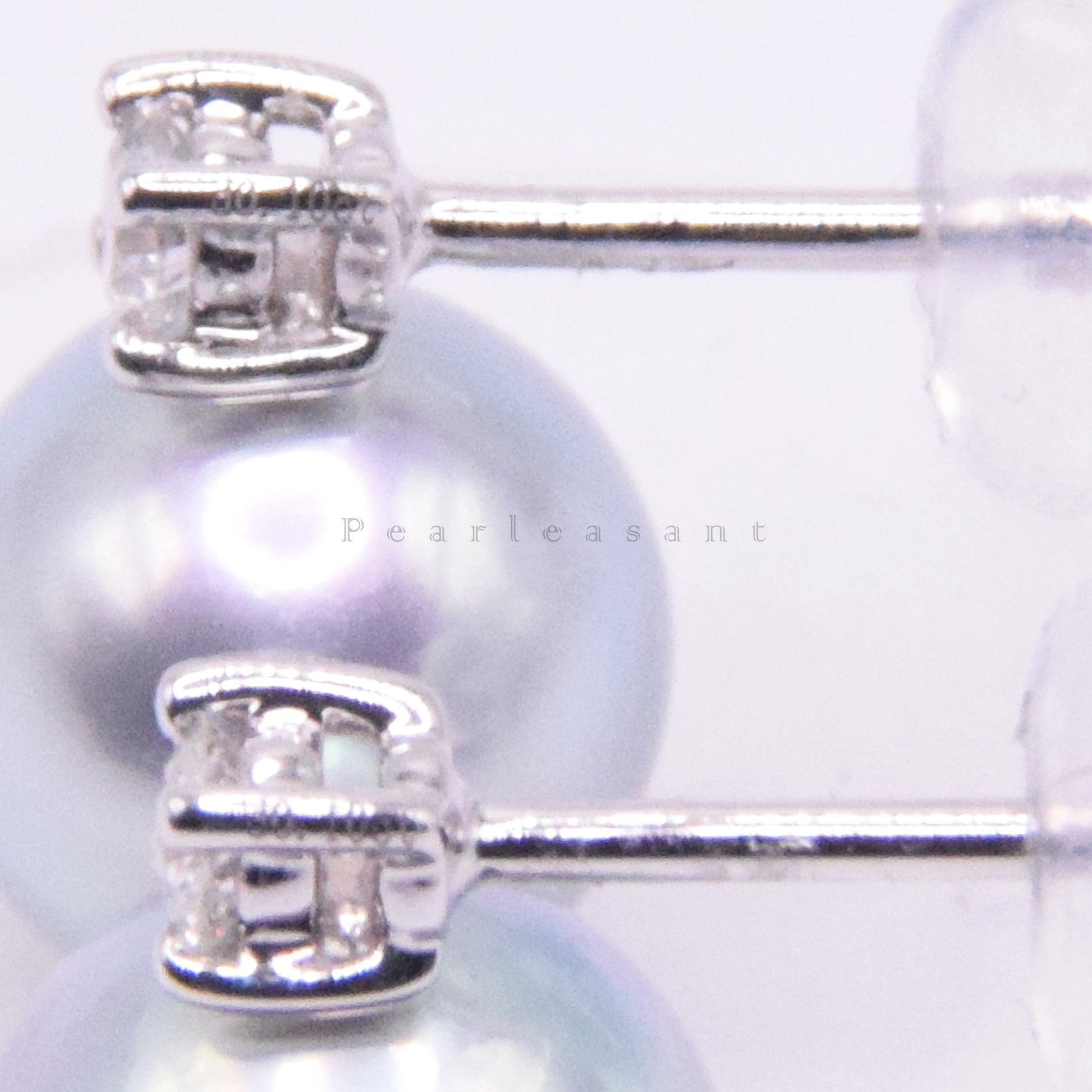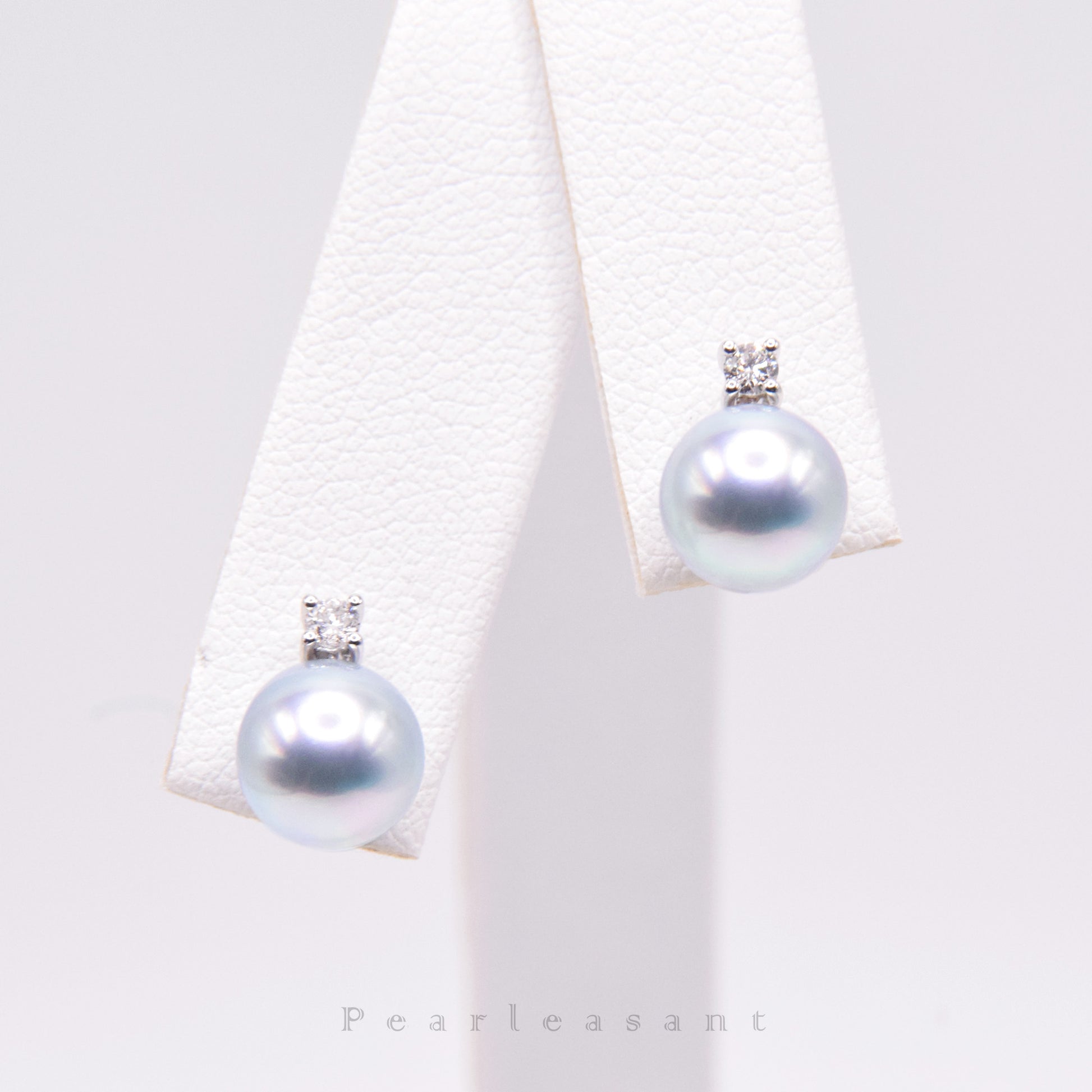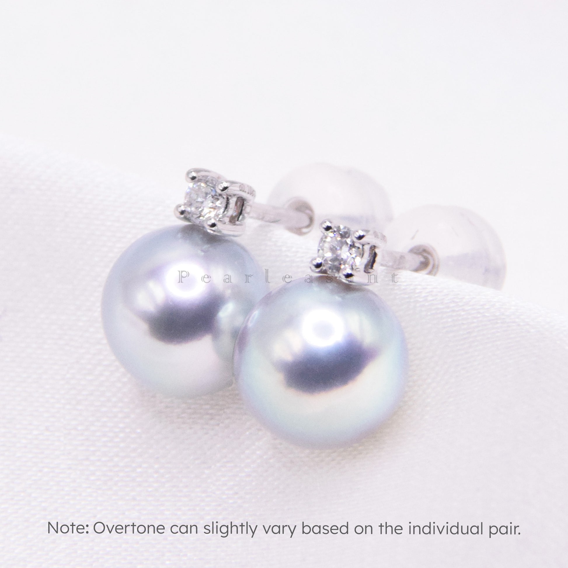 Madama Color 5-star Grade 7.5-8.0mm Blue Akoya Pearl Mini Princess Earrings with Certificate