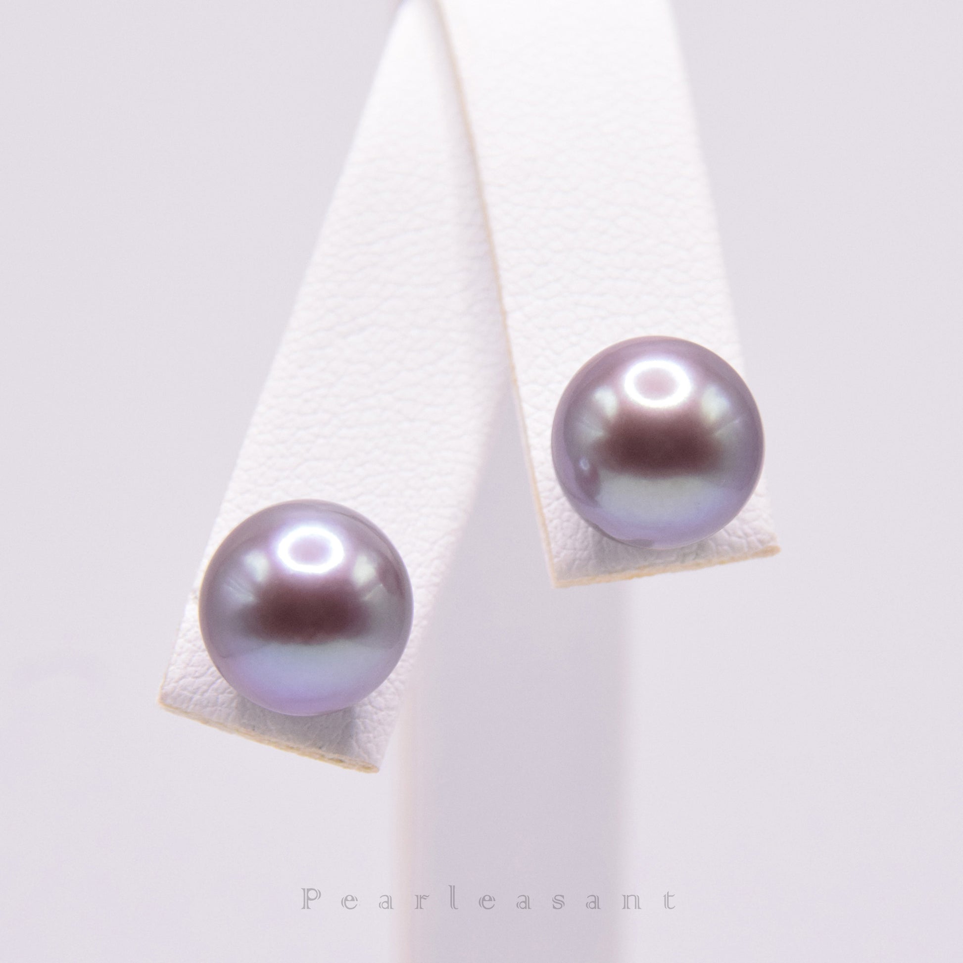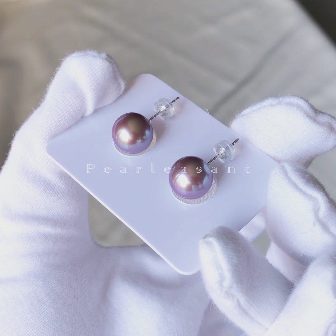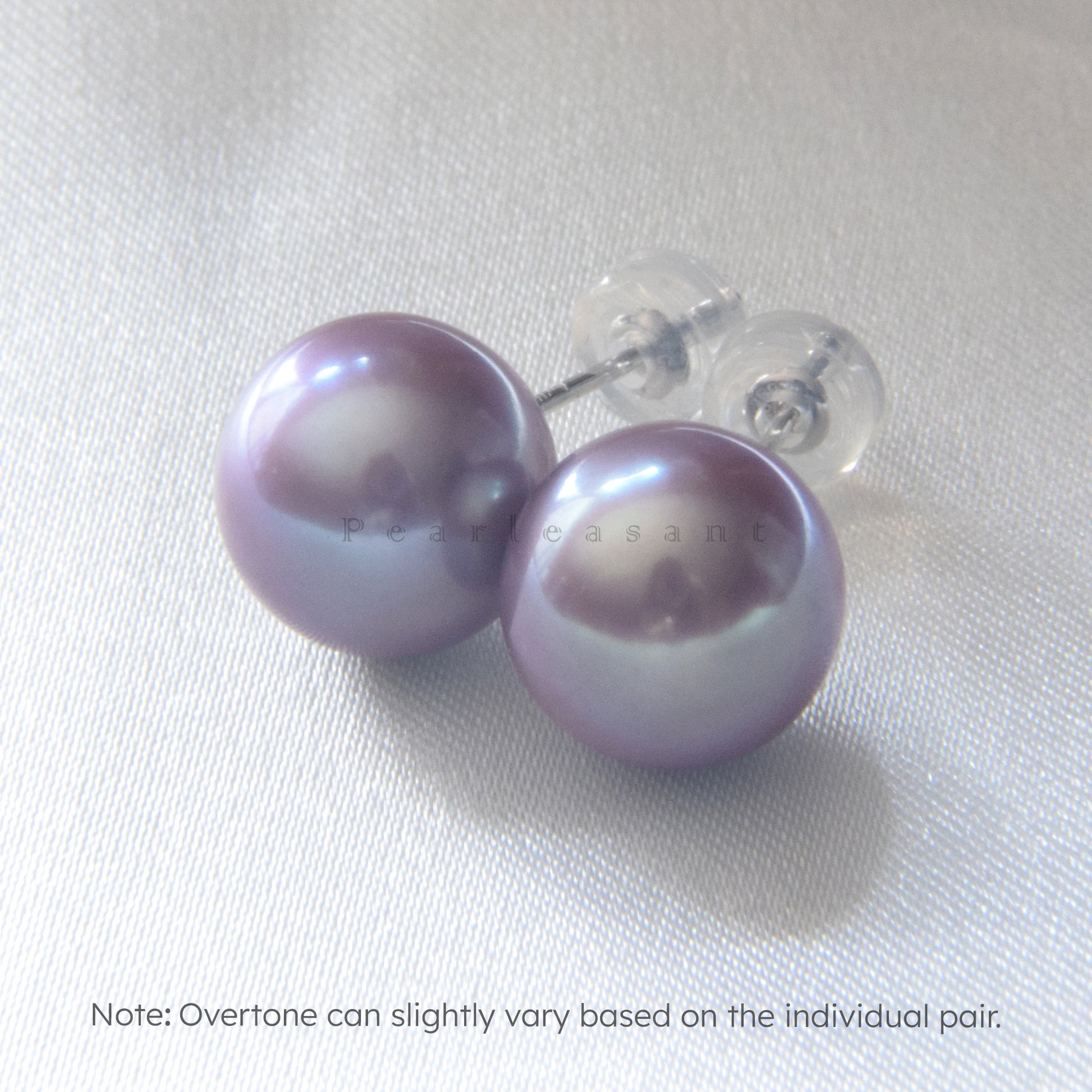 Mirror-like Surface 5A Grade 9.5-10.5mm Natural Purple Freshwater Edison Pearl Earring Studs