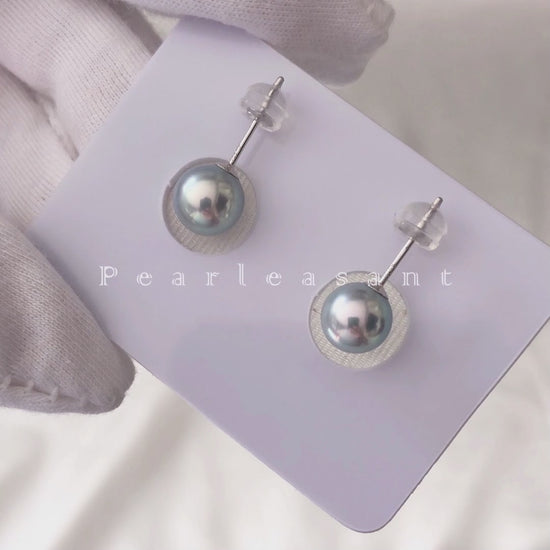5-star Grade Madama Color 7.0-8.0mm Blue Akoya Pearl Earring Studs with Certificate