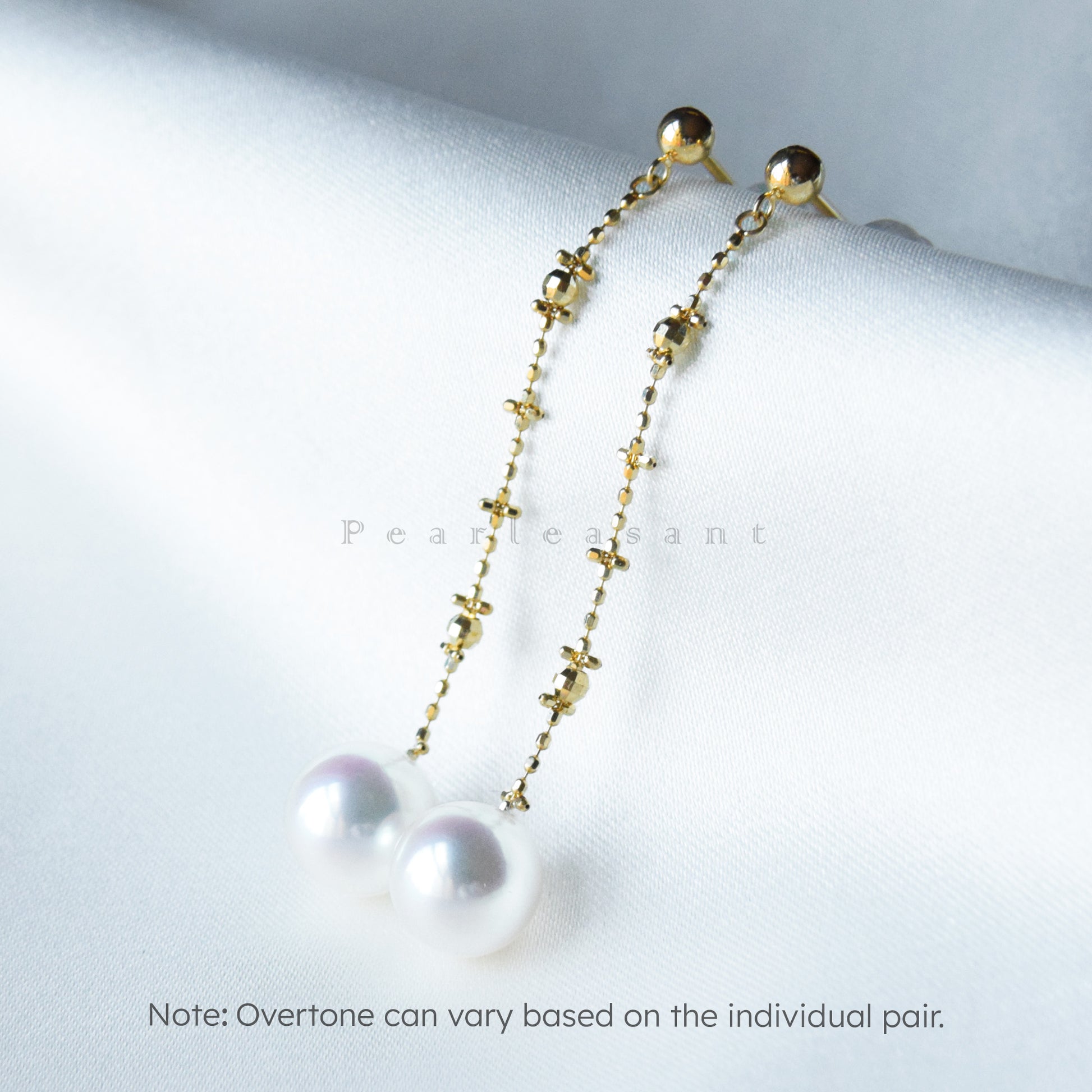 Hanadama Grade 7.5-8.0mm White Akoya Pearl Cross Chain Thread Earrings with Certificate