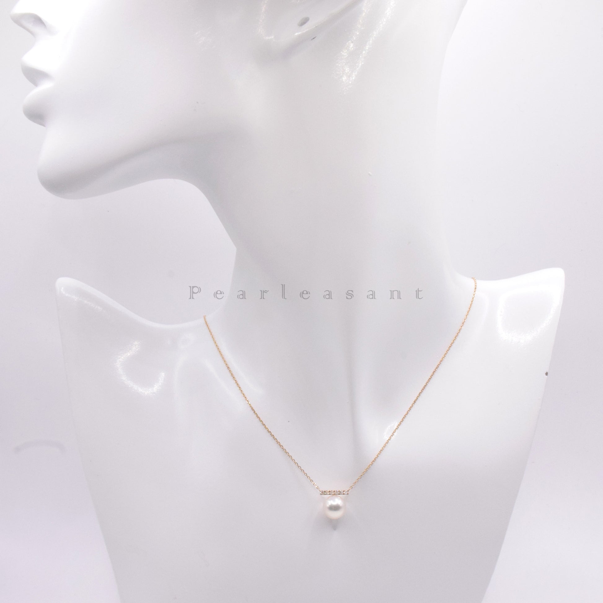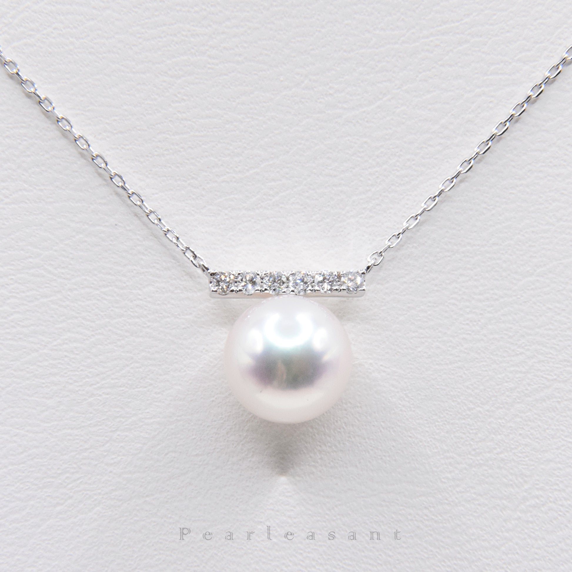 Hanadama Grade 8.0-8.5mm White Akoya Pearl Diamond Bar Pendant with Certificate