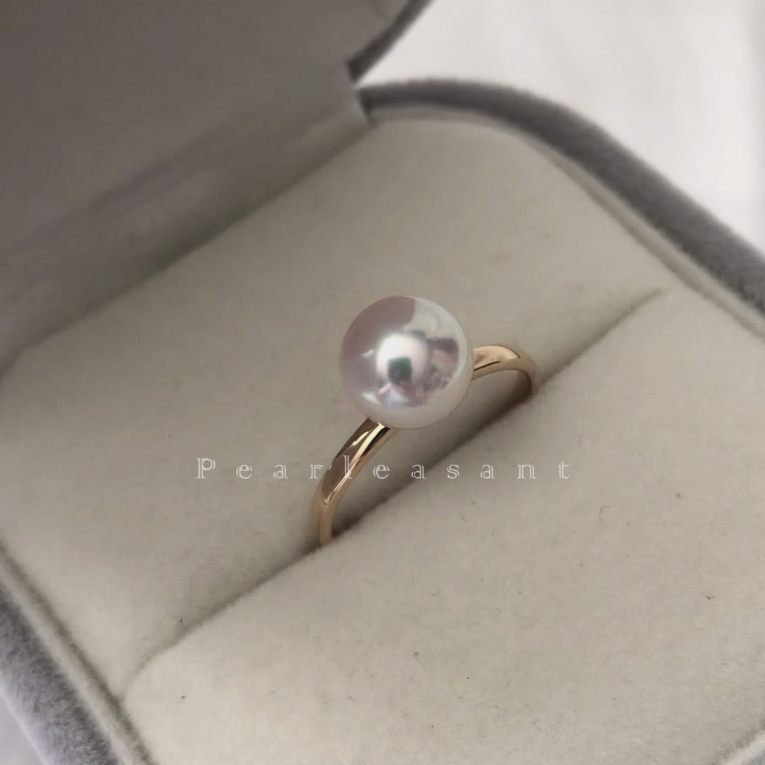 Hanadama Grade 8.0-8.5mm White Akoya Pearl Essential Ring with Certificate