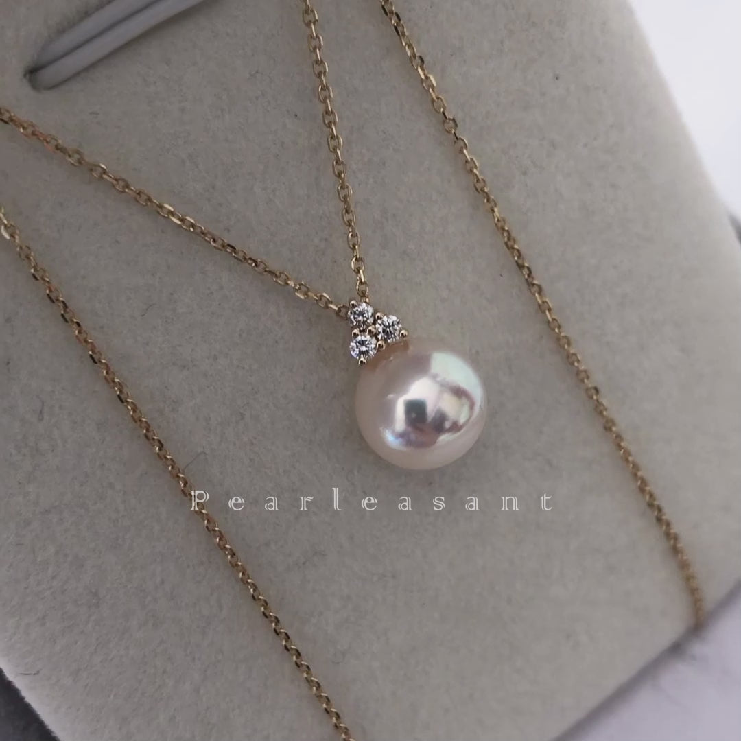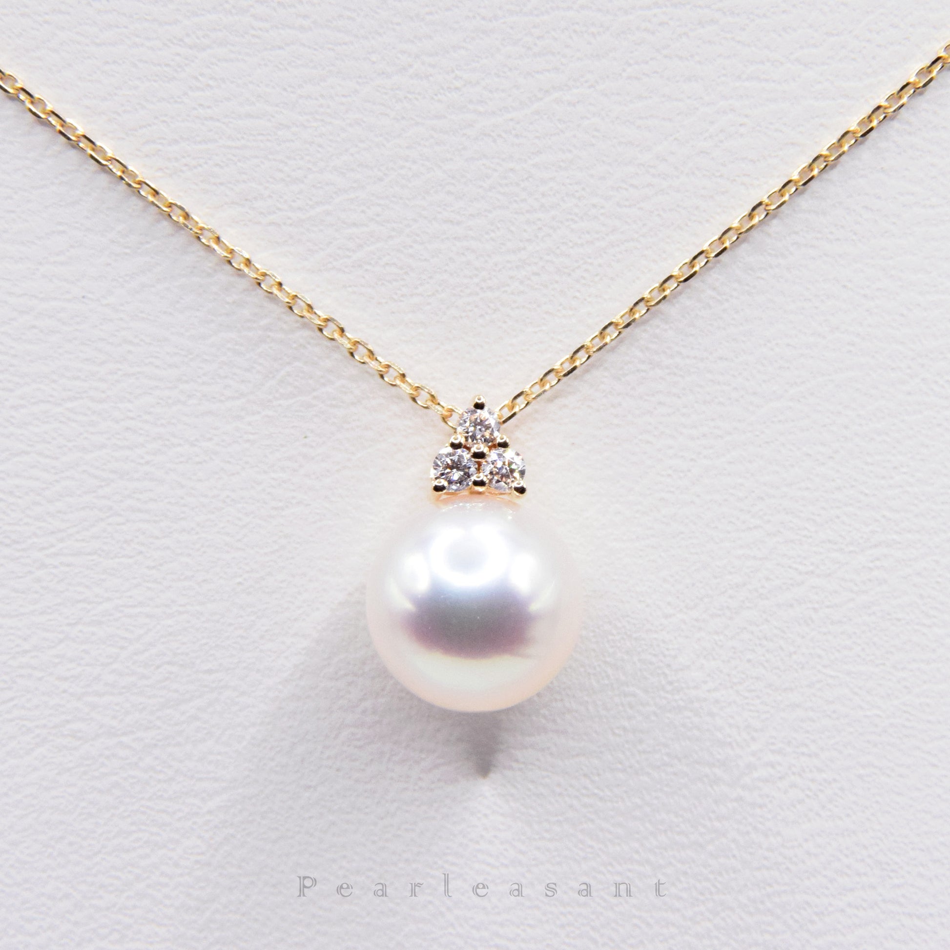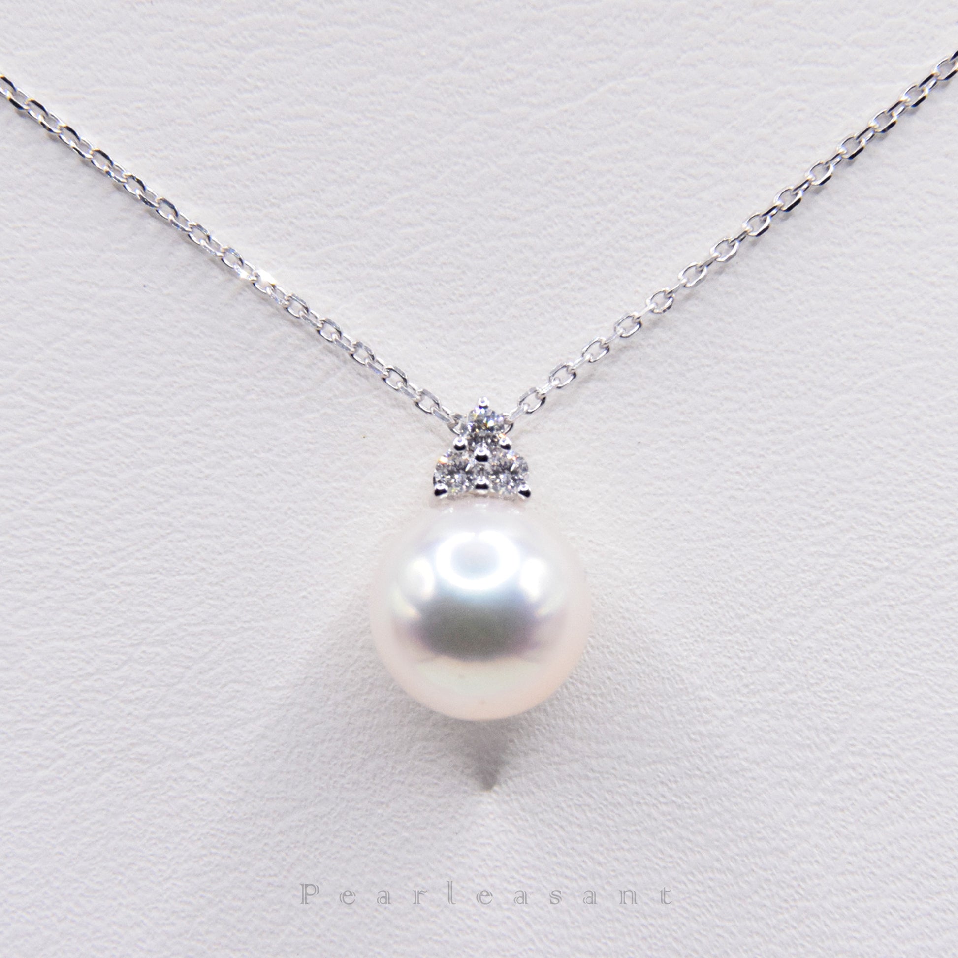 Hanadama Grade 8.0-8.5mm White Akoya Pearl Trio Diamond Pendant with Certificate