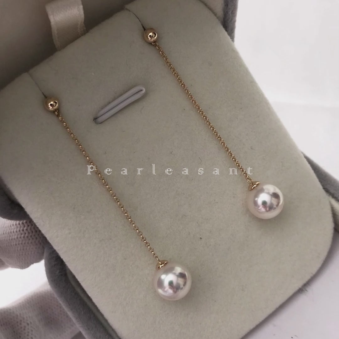 Hanadama Grade 8.0-8.5mm White Akoya Pearl Detachable Thread Earrings with Certificate