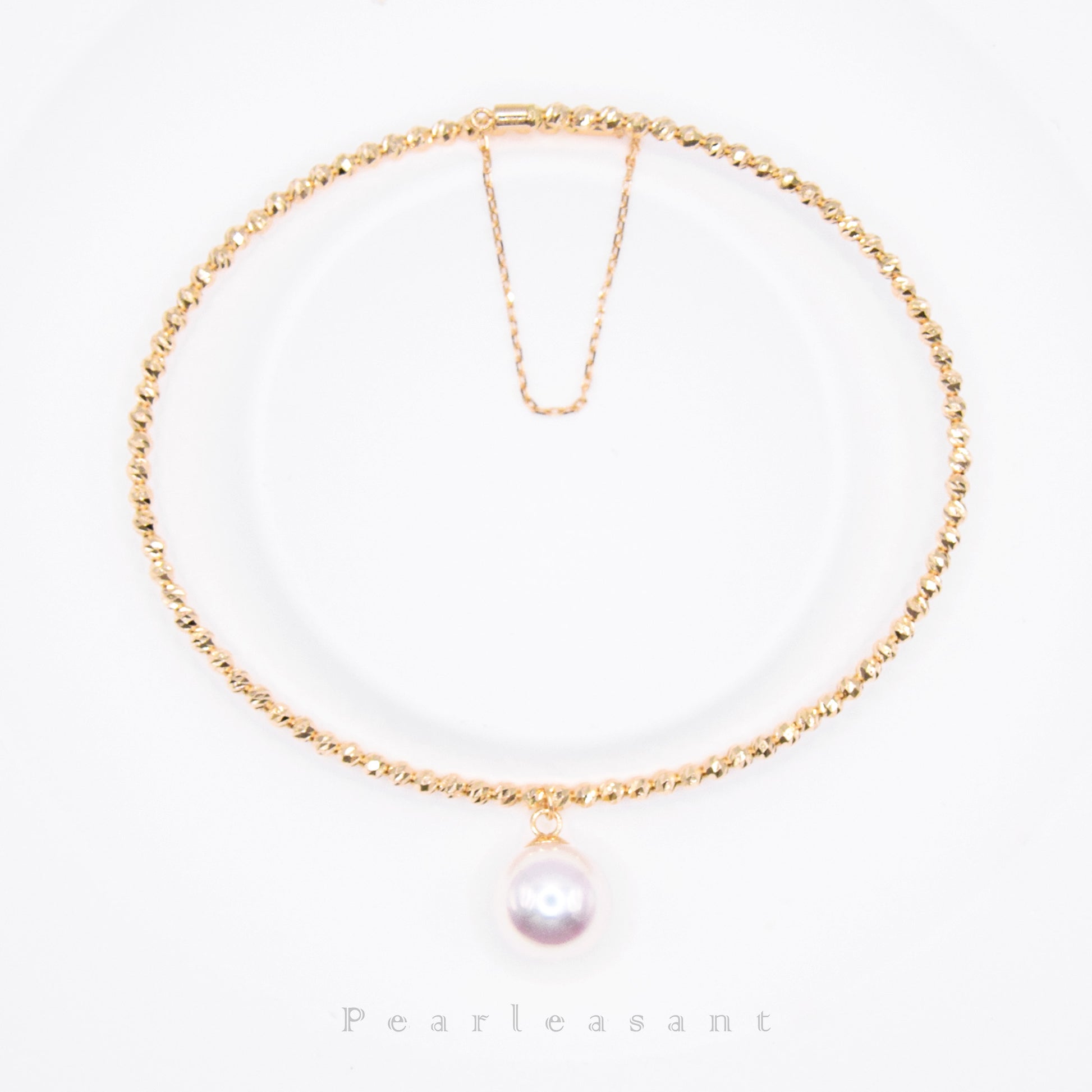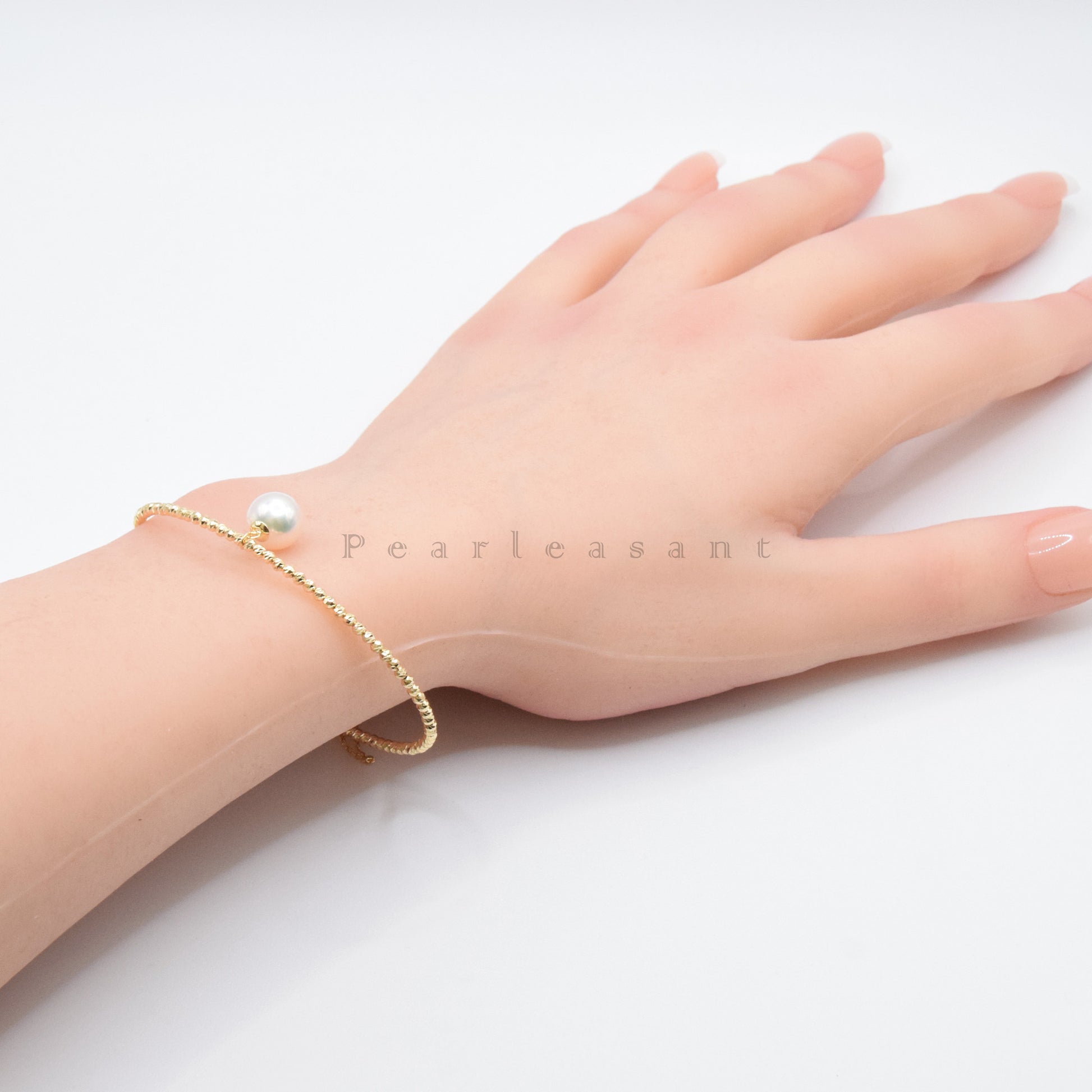 Hanadama Grade 8.0-8.5mm White Akoya Pearl Golden Bead Bangle with Certificate
