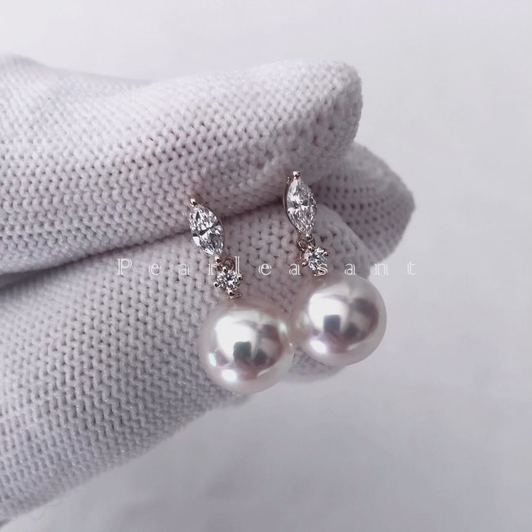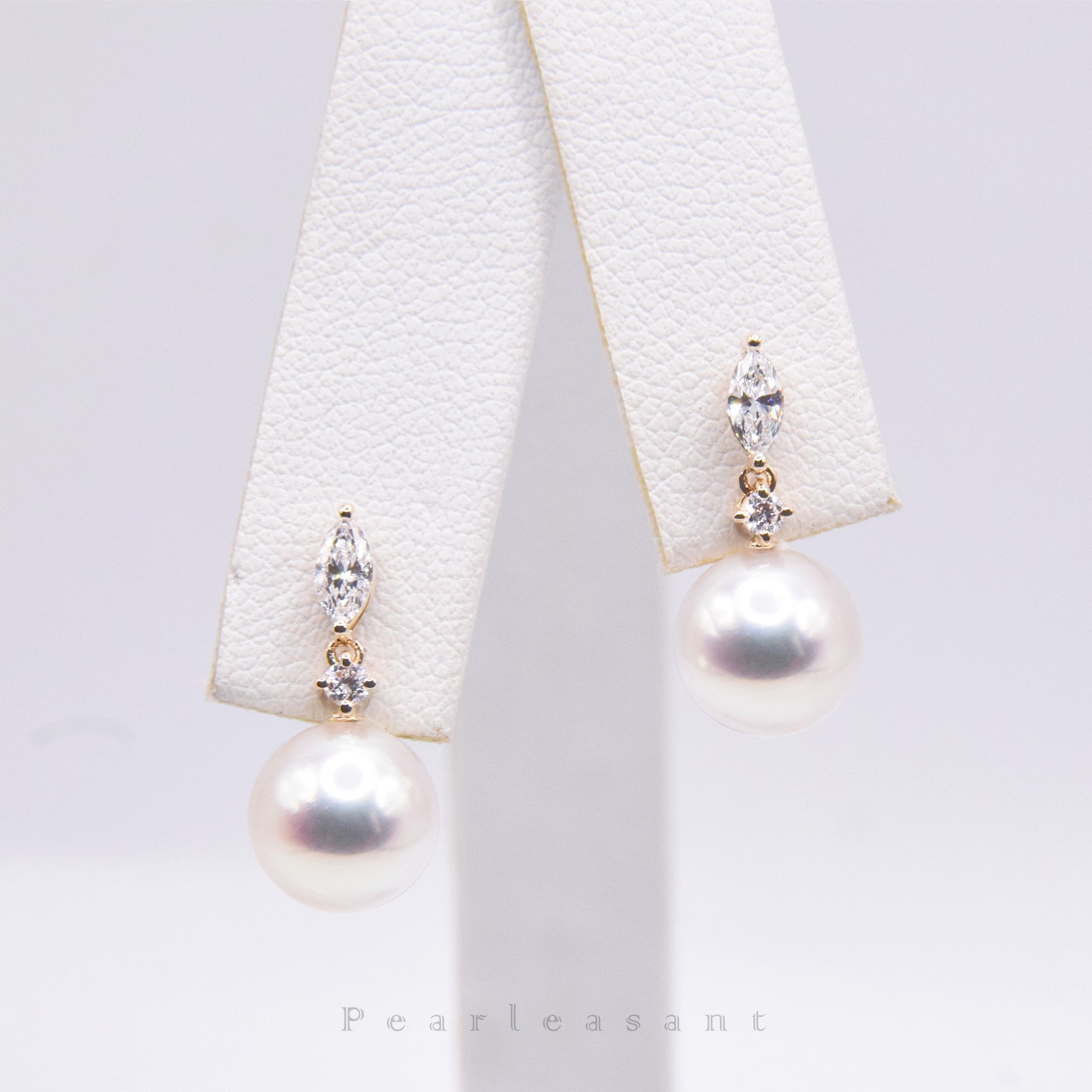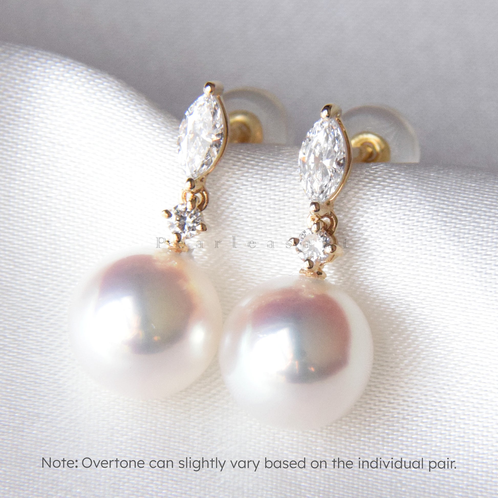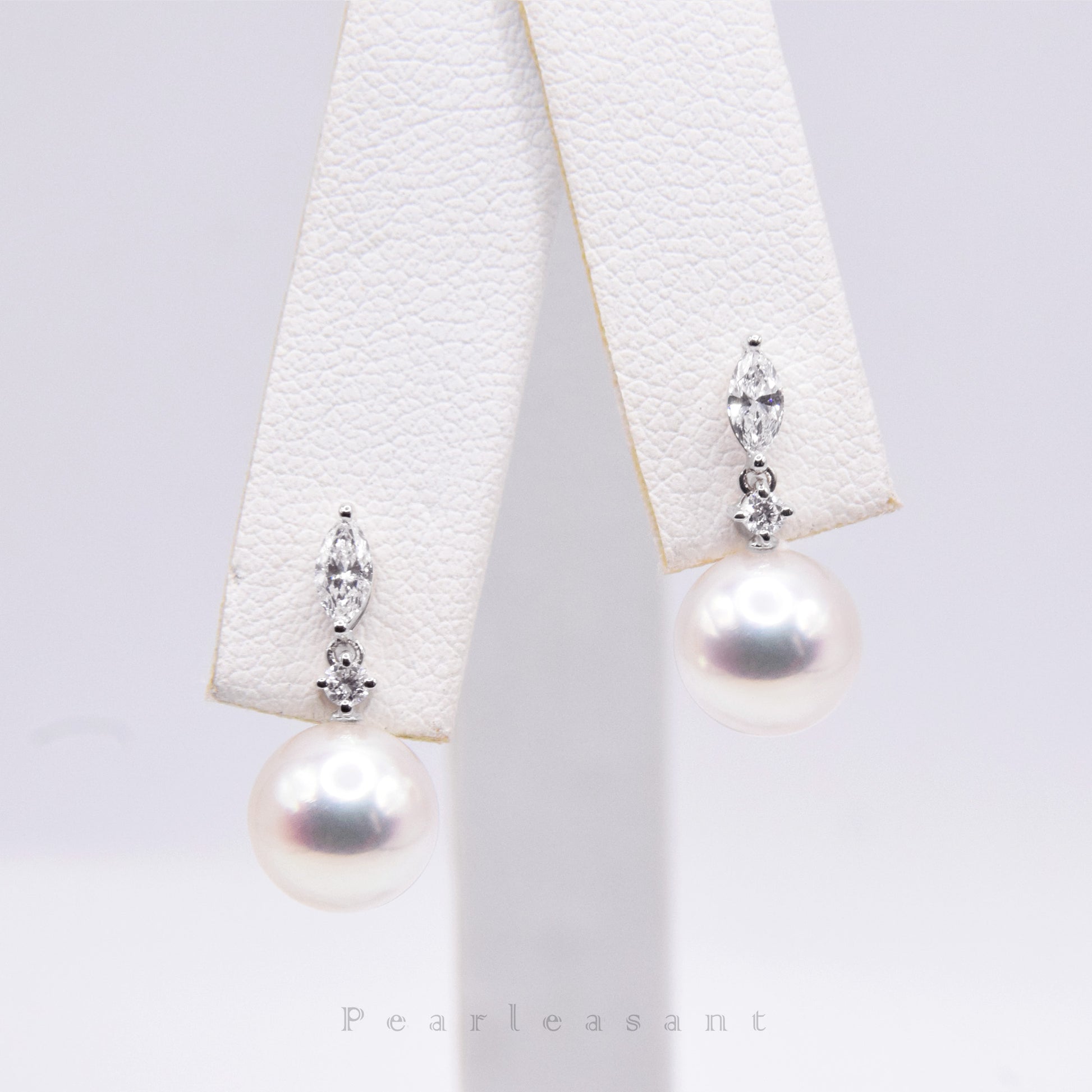 Hanadama Grade 8.0-8.5mm White Akoya Pearl Marquise Earrings with Certificate