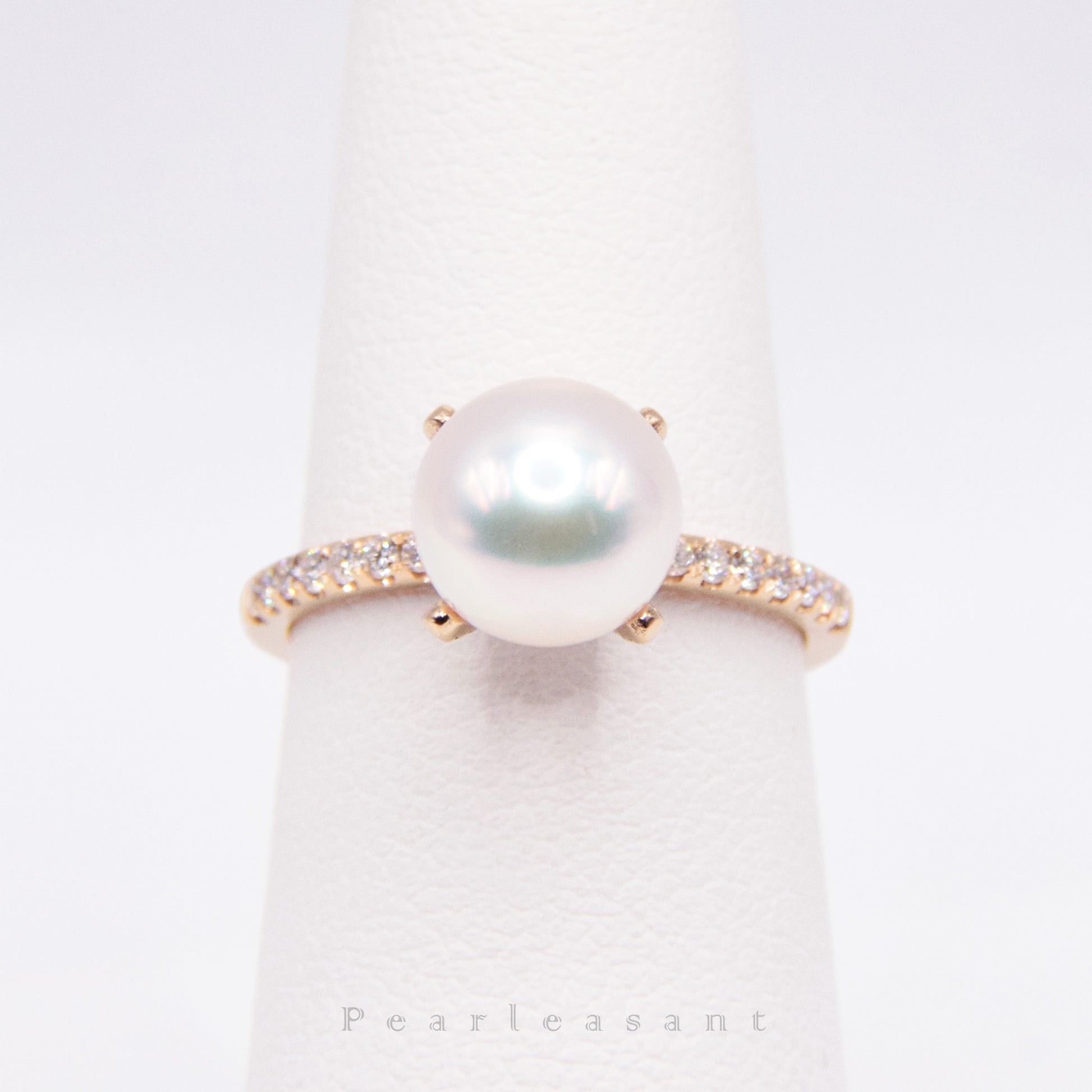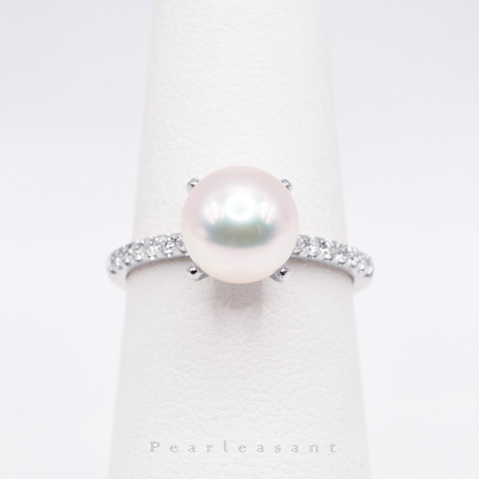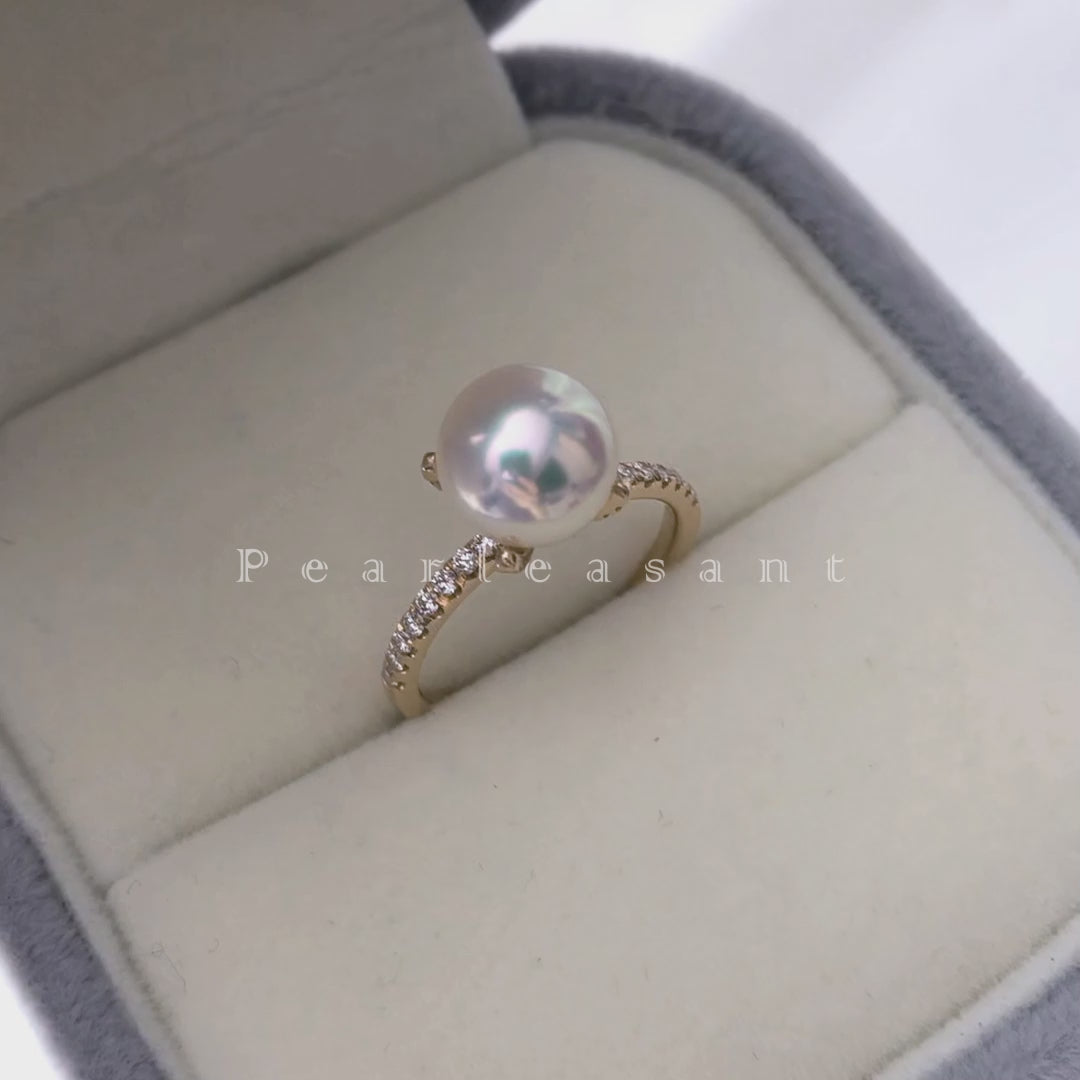 Hanadama Grade 8.0-8.5mm White Akoya Pearl Prong Setting Diamond Ring with Certificate (Pre-order)