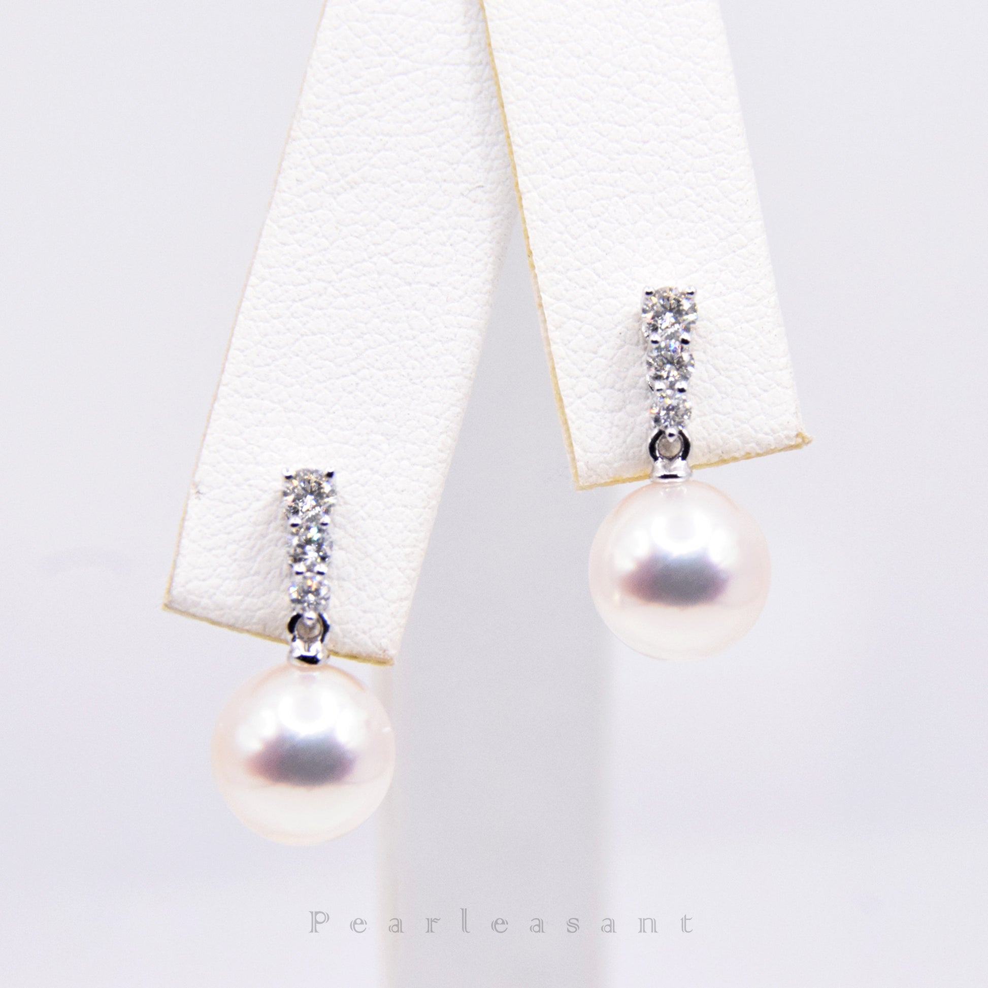 Hanadama Grade 8.0-8.5mm White Akoya Pearl Radiance Earrings with Certificate