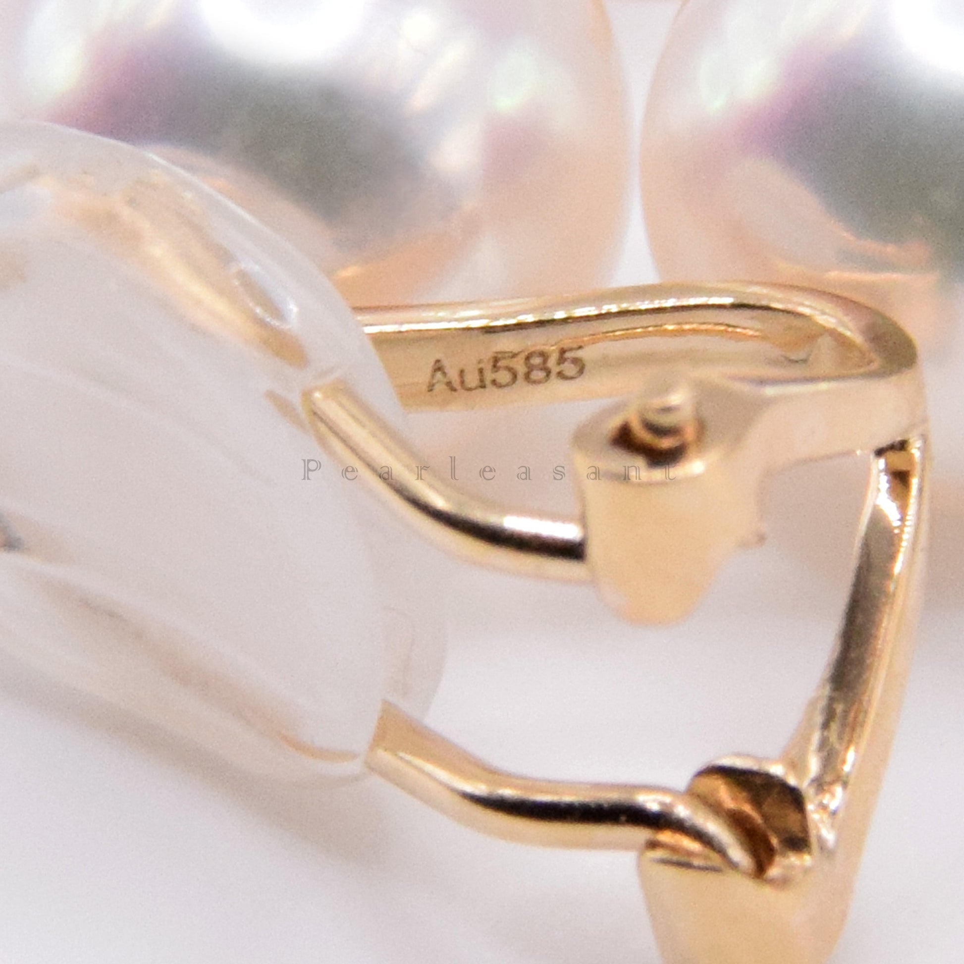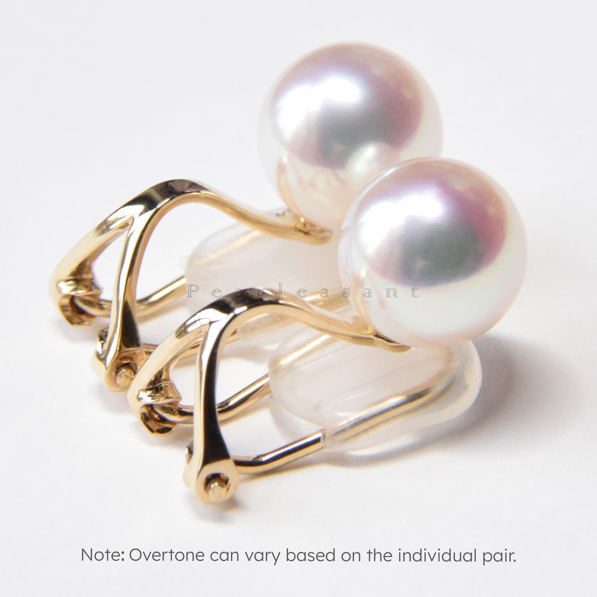 Hanadama Grade 8.0-9.0mm White Akoya Pearl Earring Clips with Certificate
