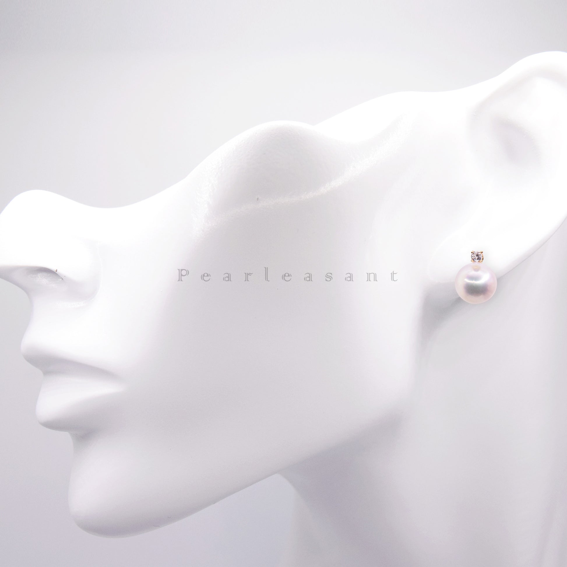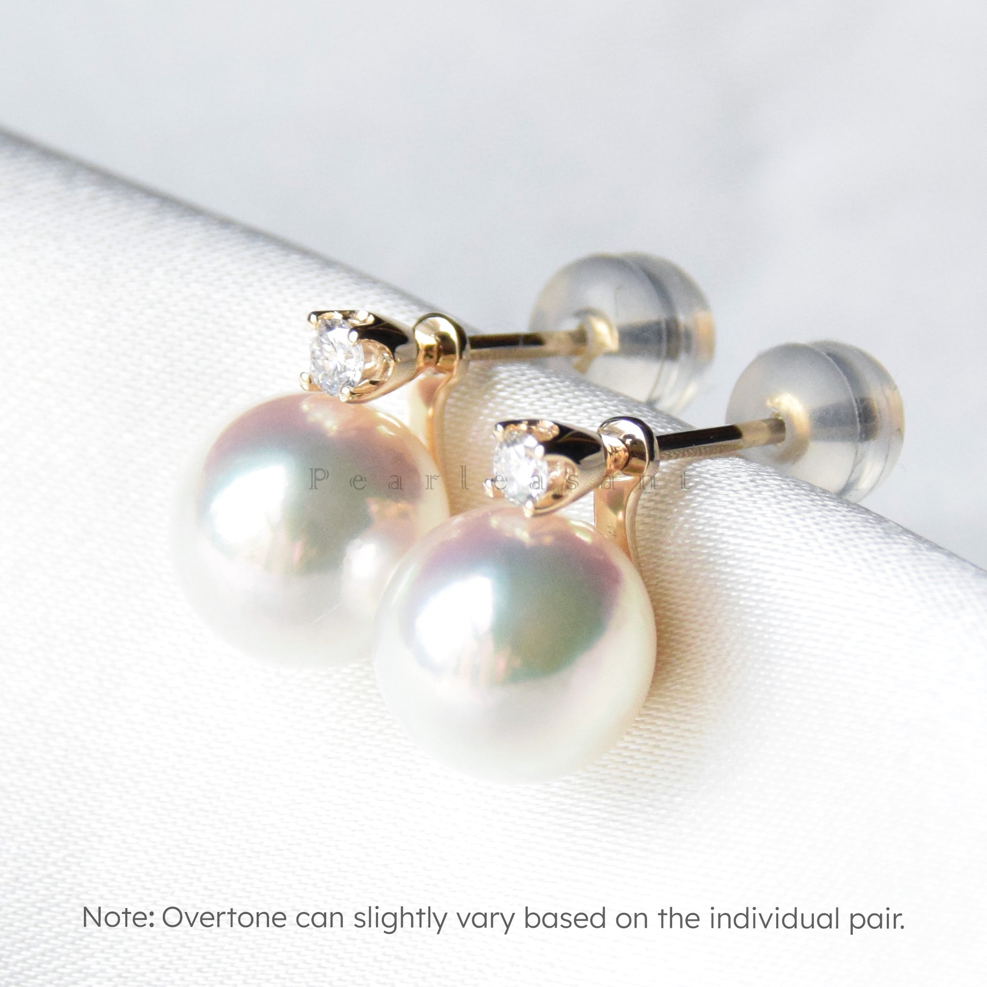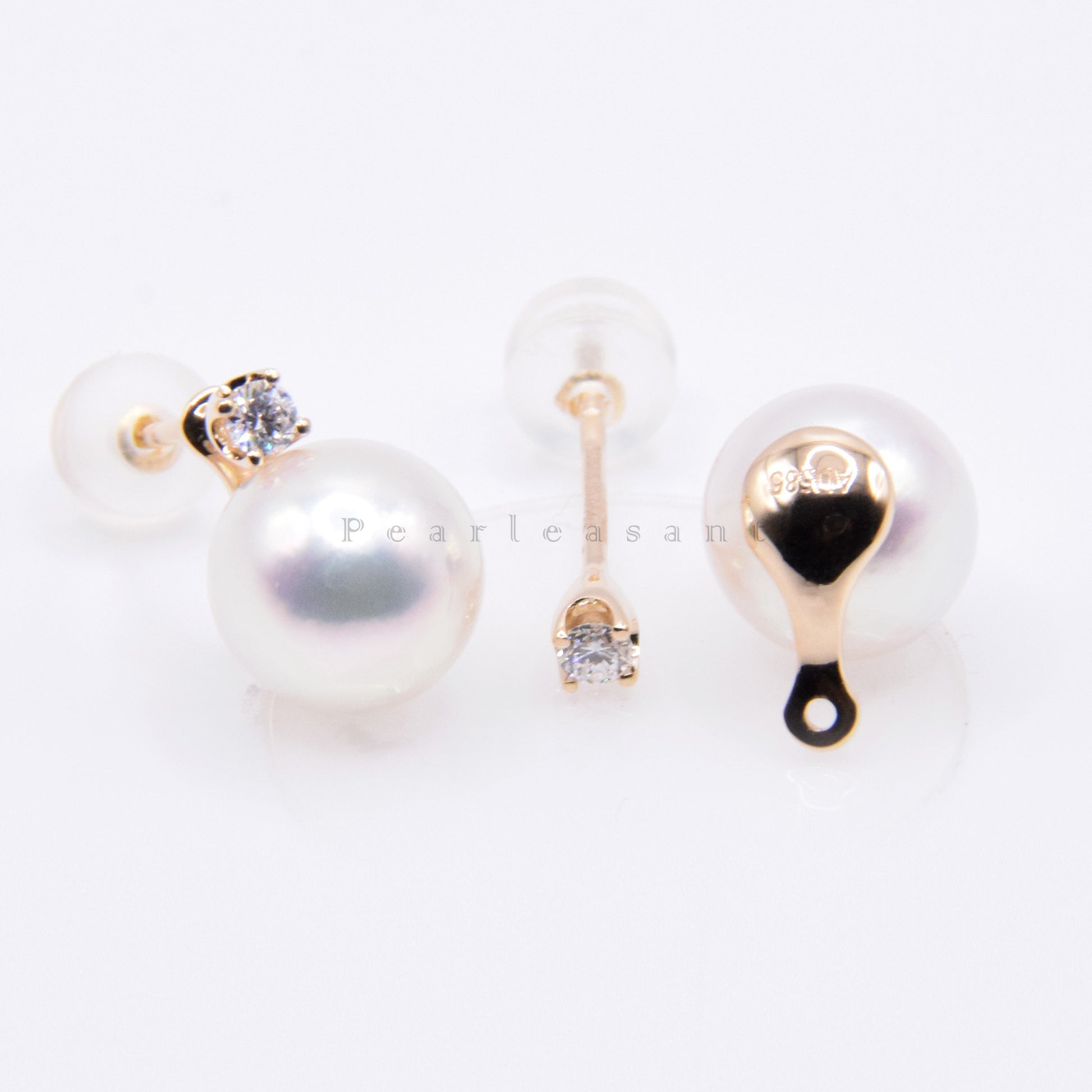 Hanadama Grade 8.5-9.0mm White Akoya Pearl Detachable Princess Earrings with Certificate