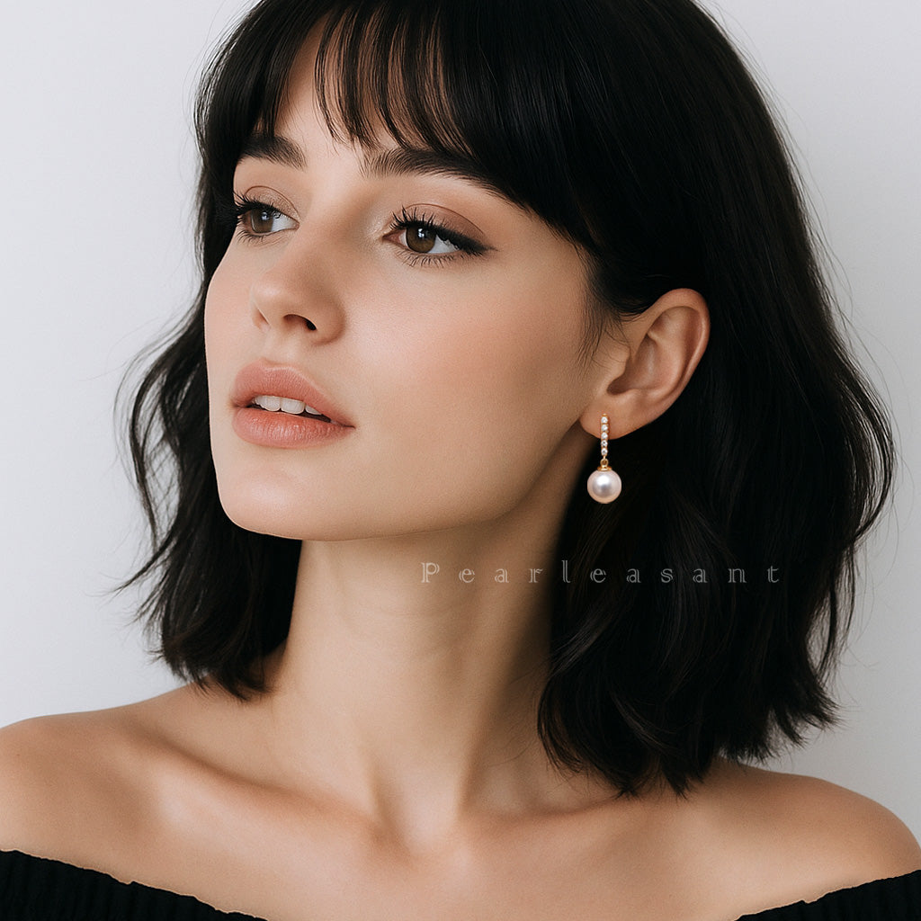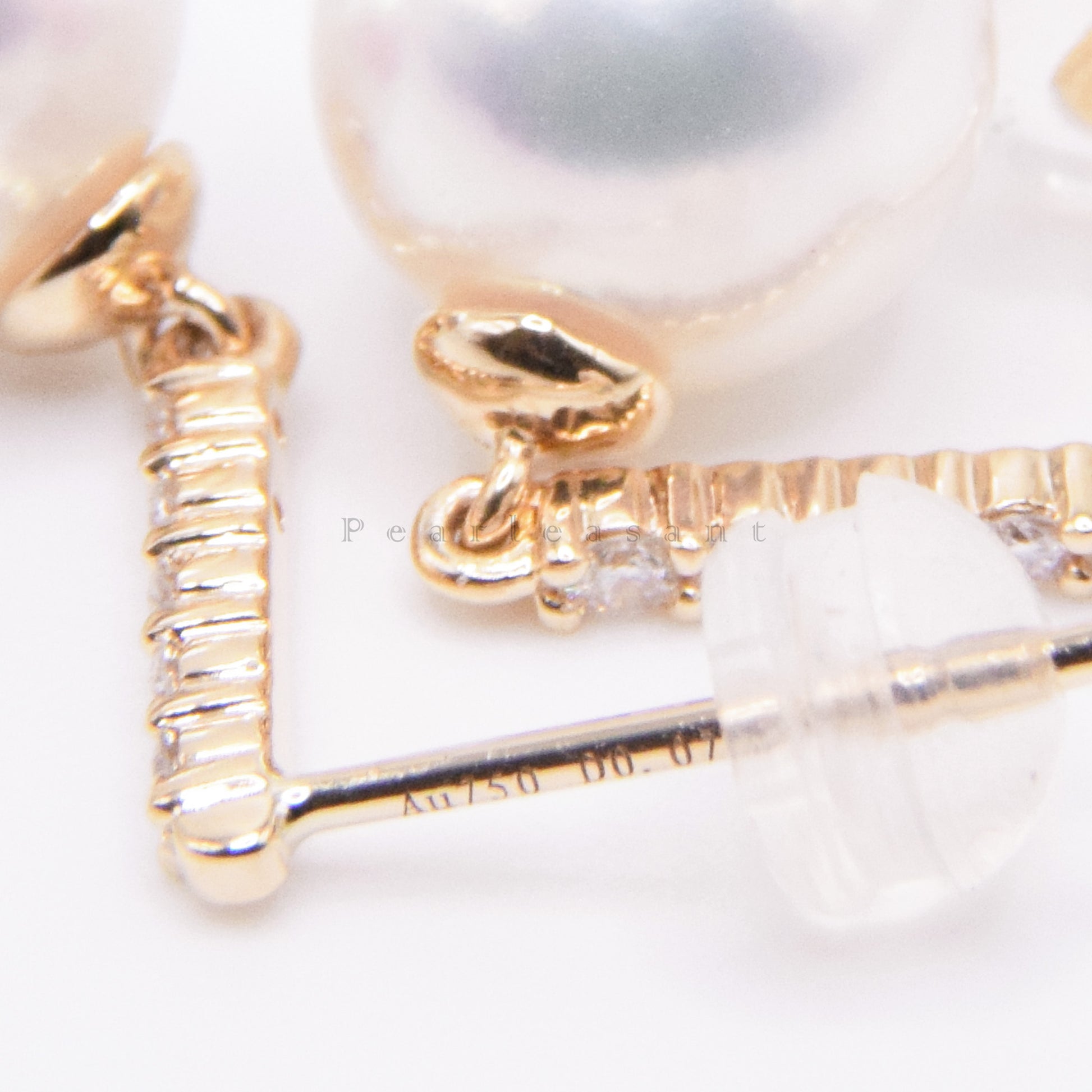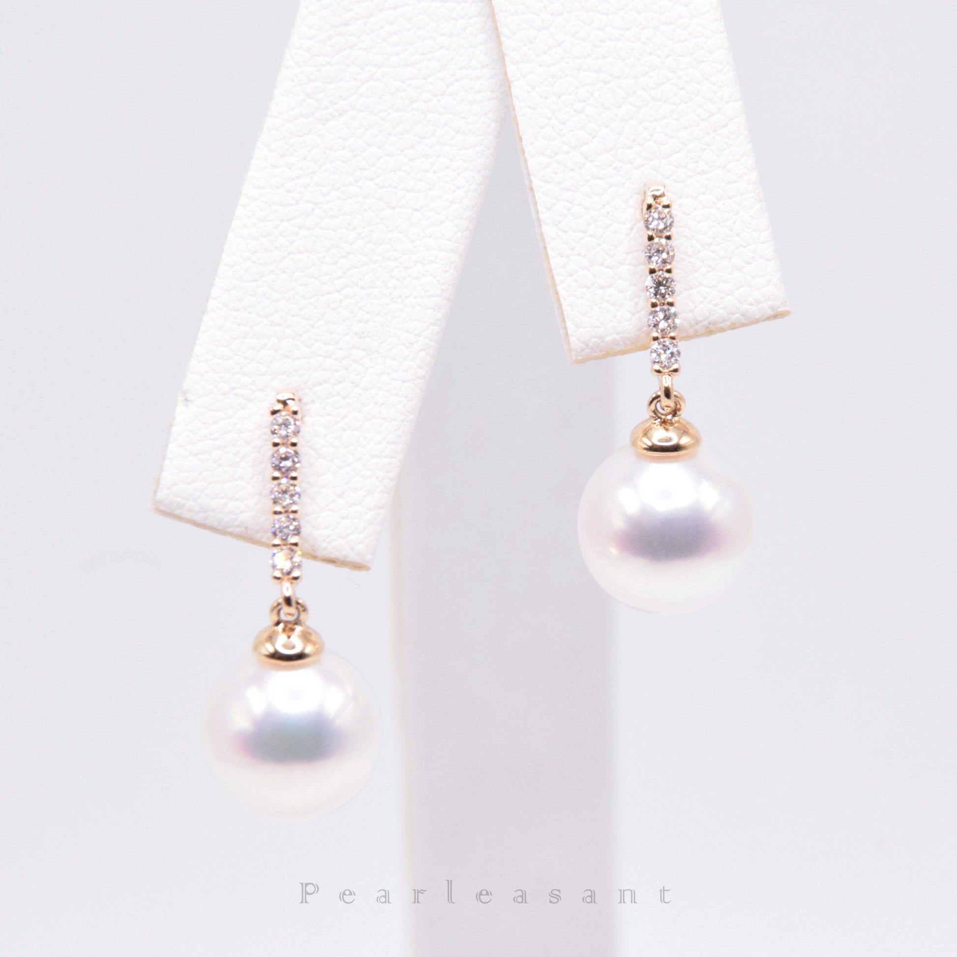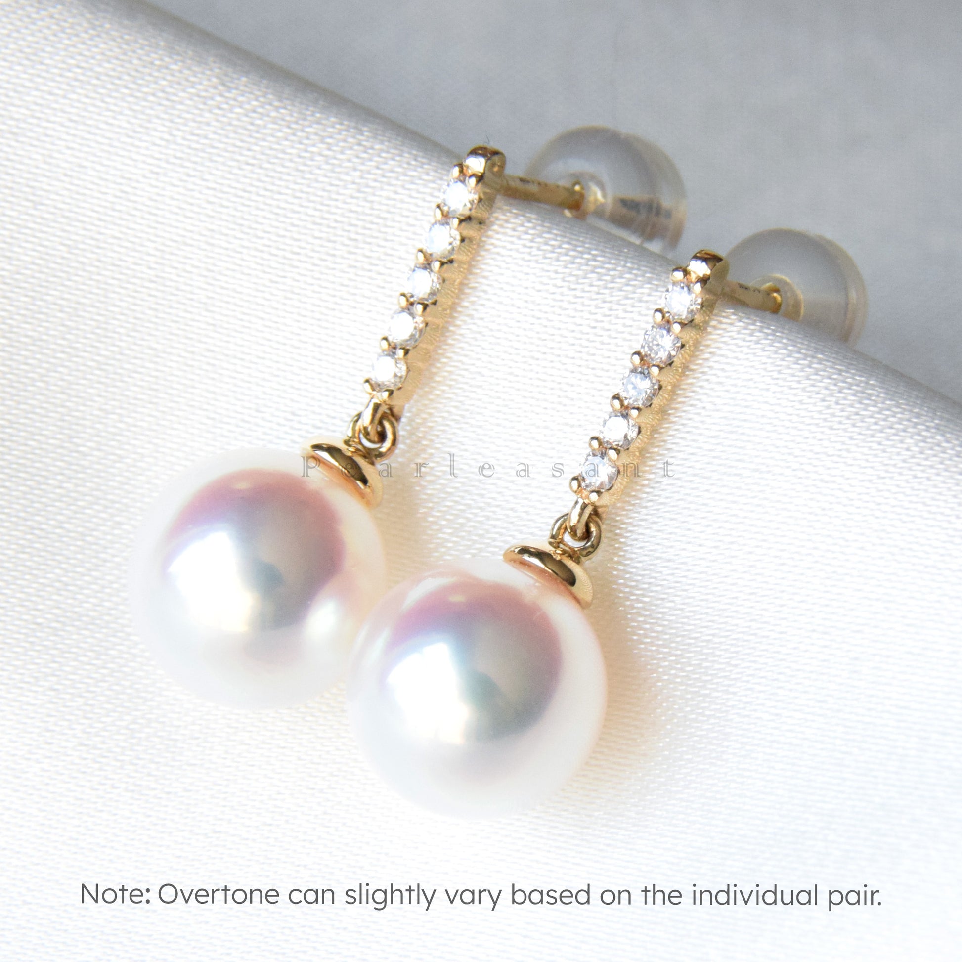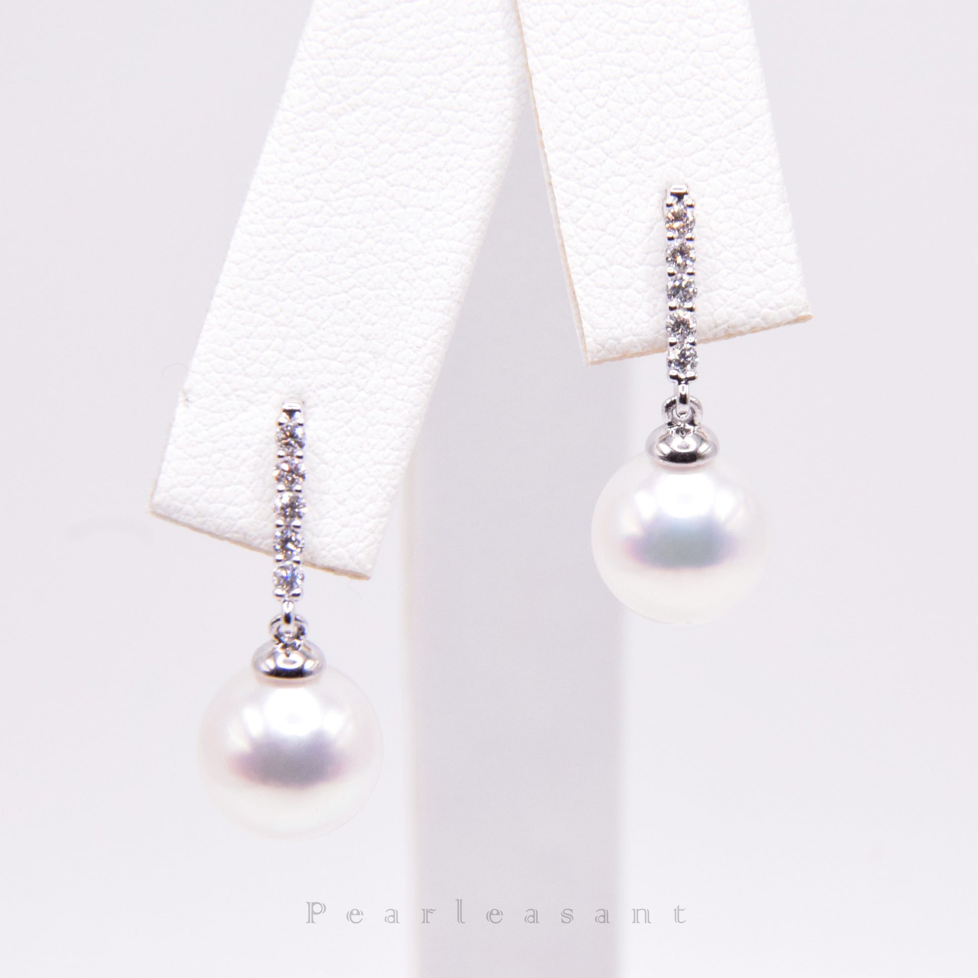 Hanadama Grade 8.5-9.0mm White Akoya Pearl Diamond Line Earrings with Certificate
