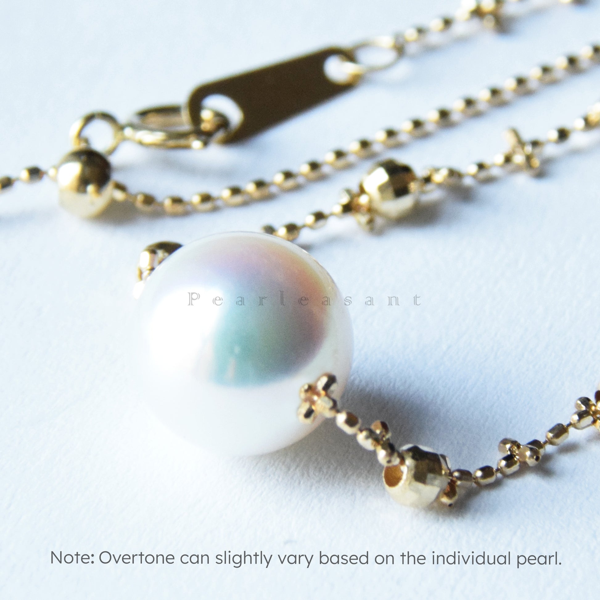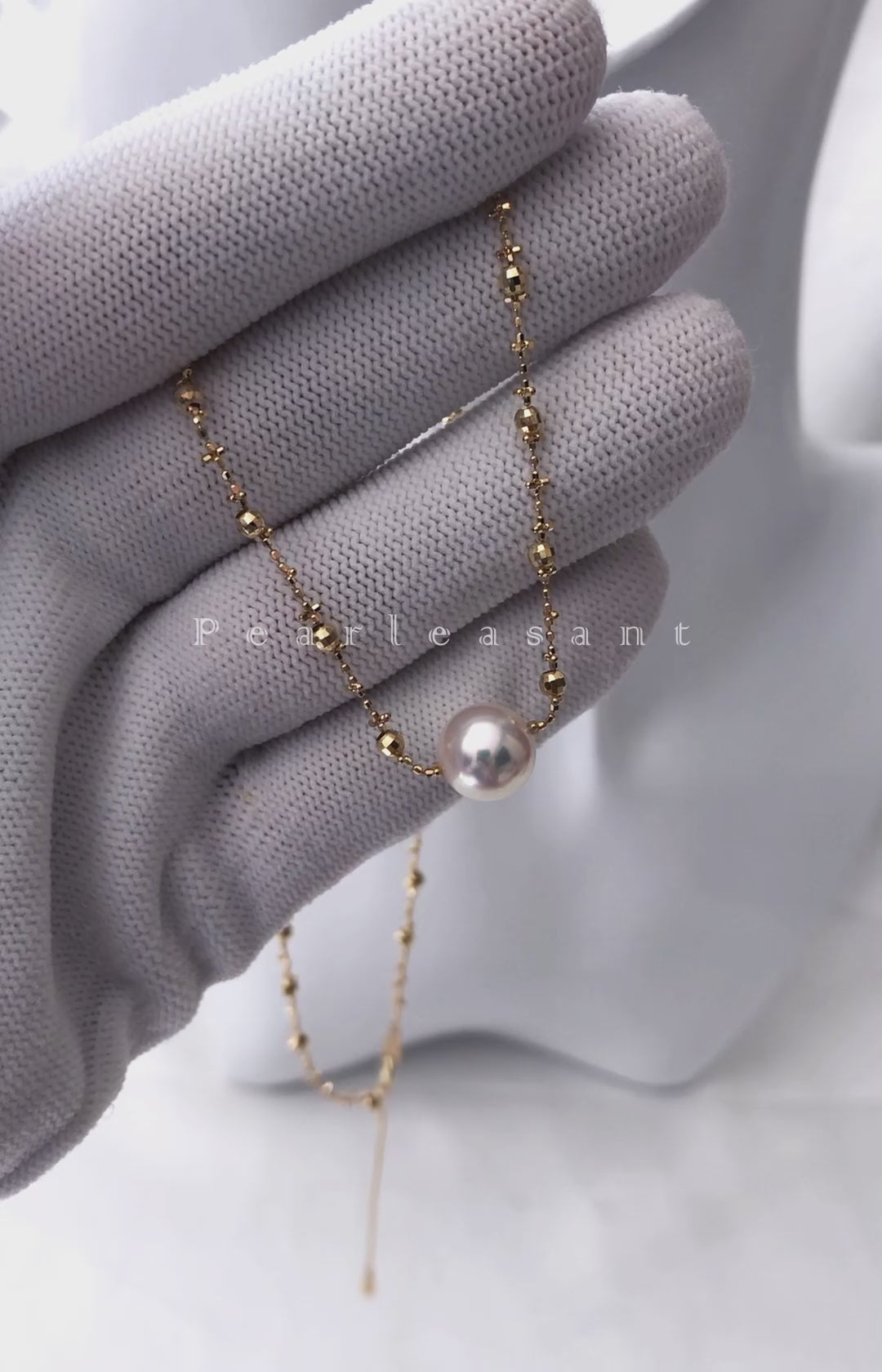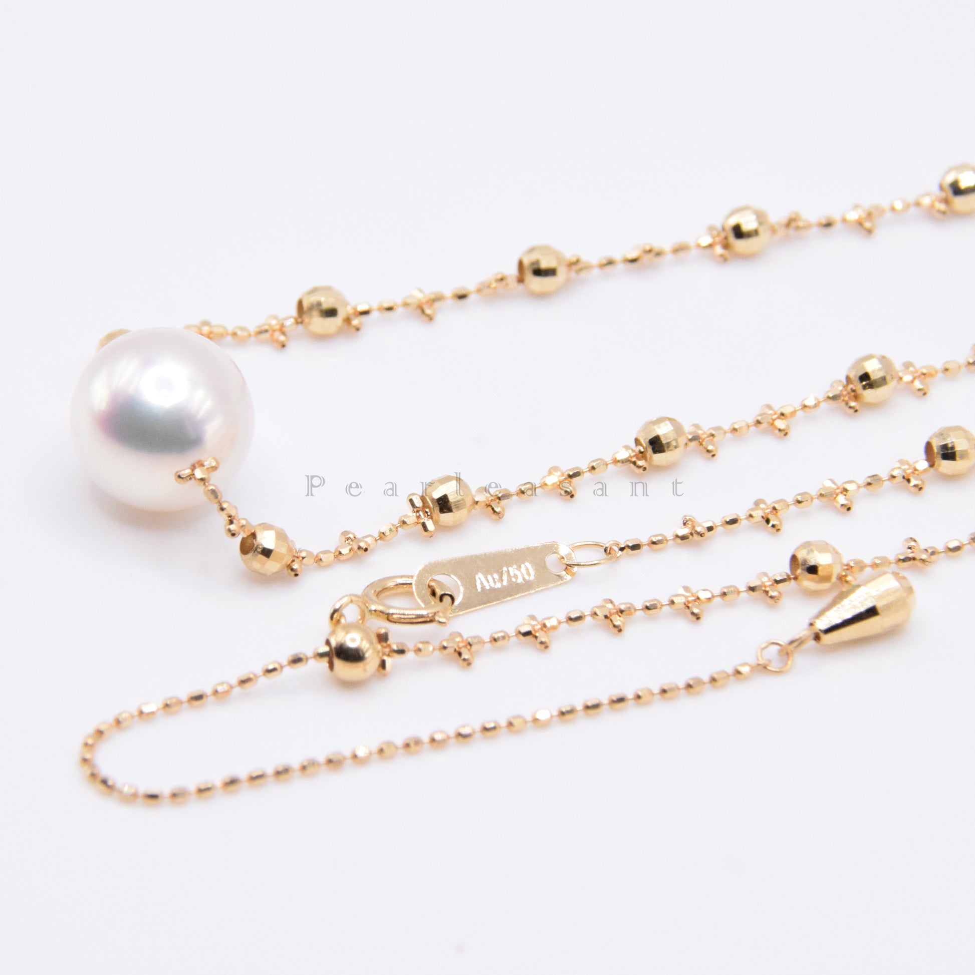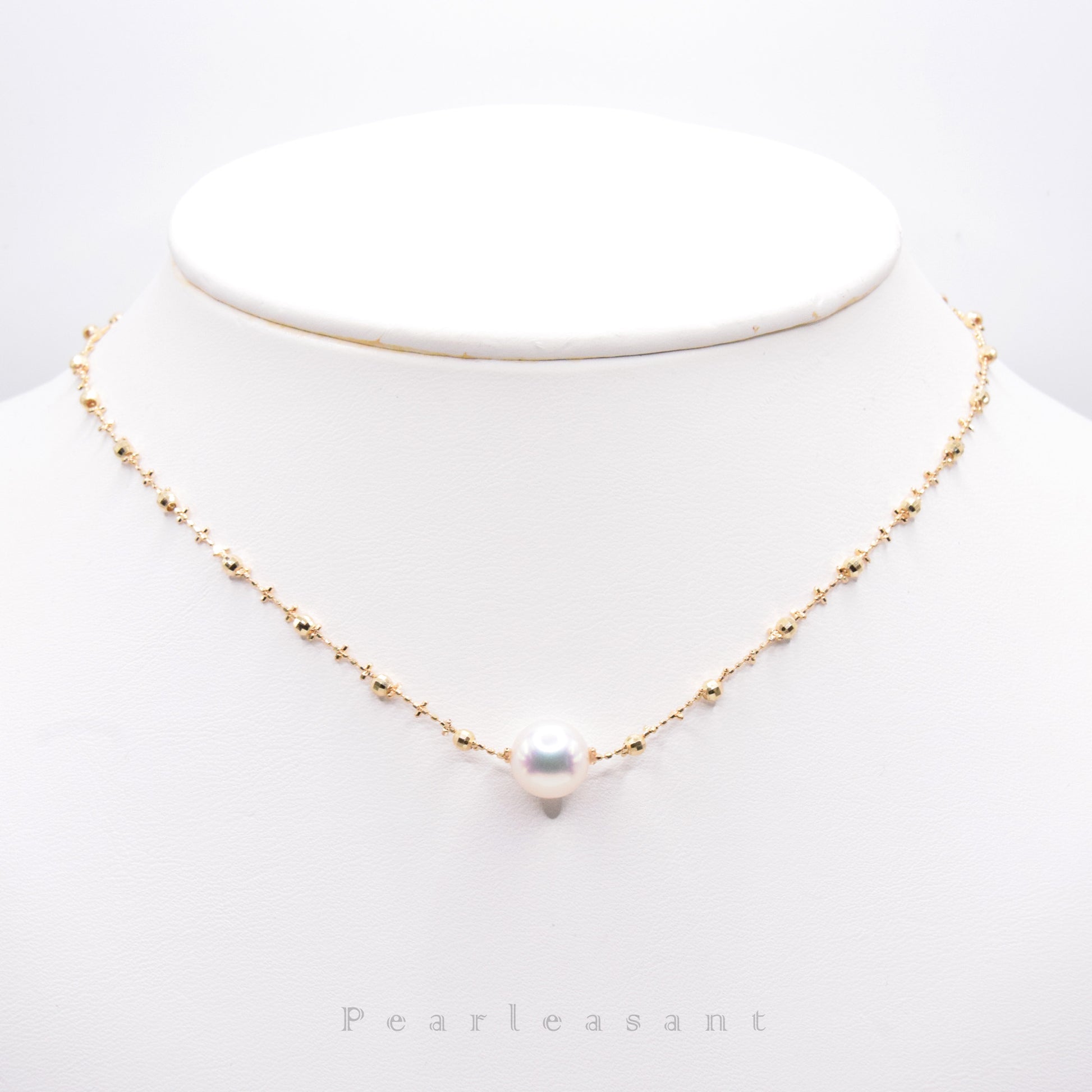 Hanadama Grade 8.5-9.0mm Natural White Akoya Pearl Cross Chain Floating Pendant with Certificate