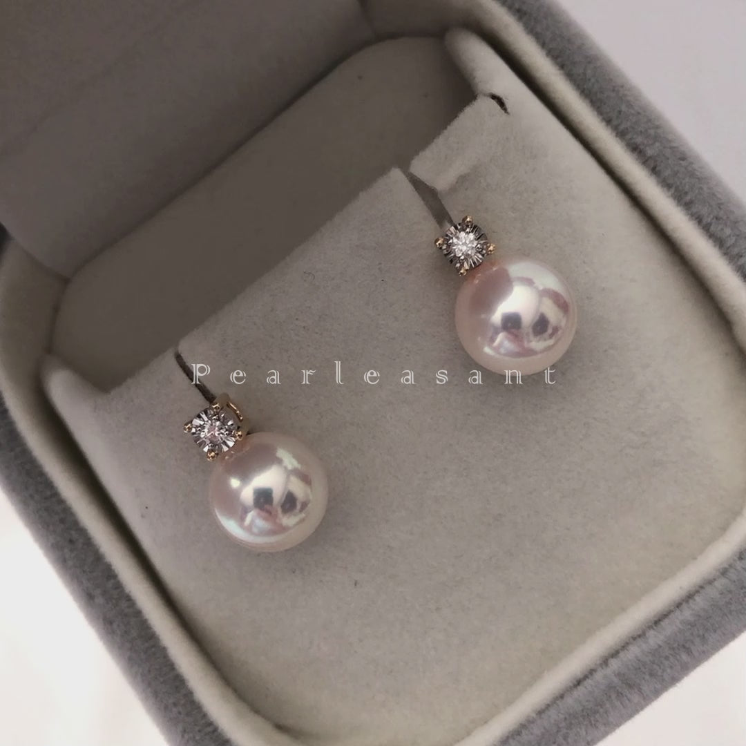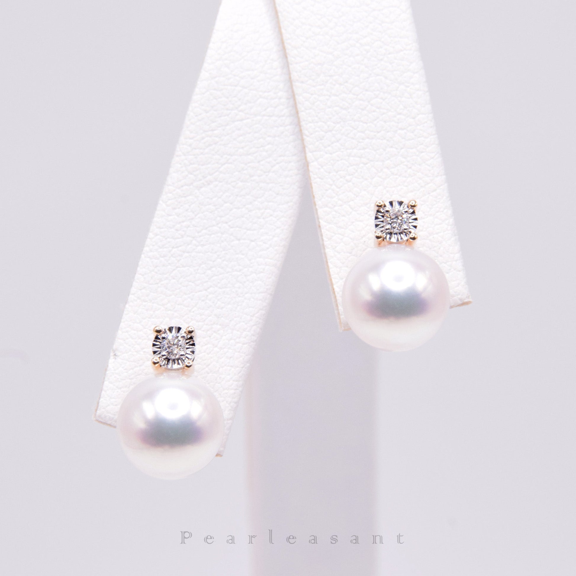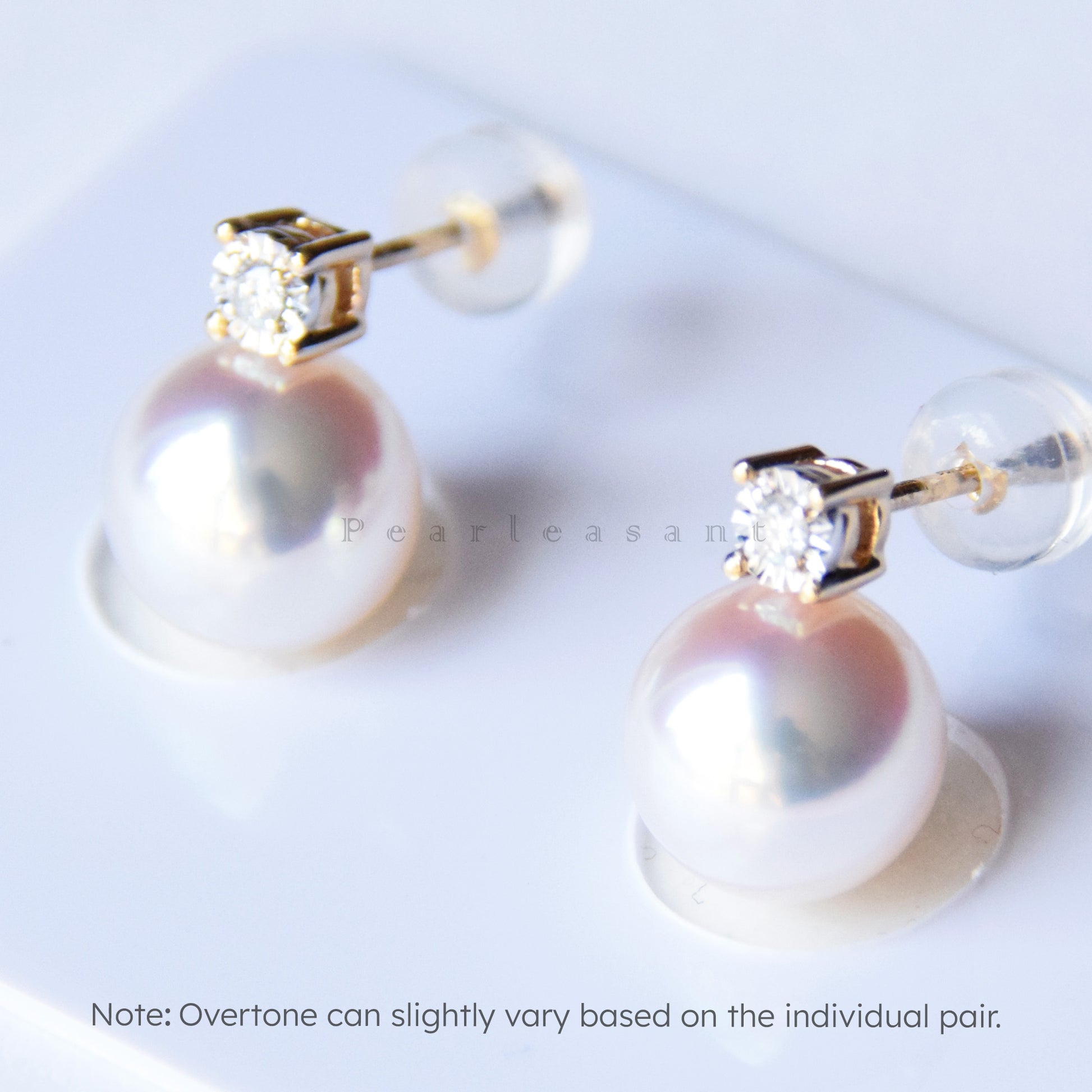 Hanadama Grade 8.0-9.0mm White Akoya Pearl Princess Earrings with Certificate