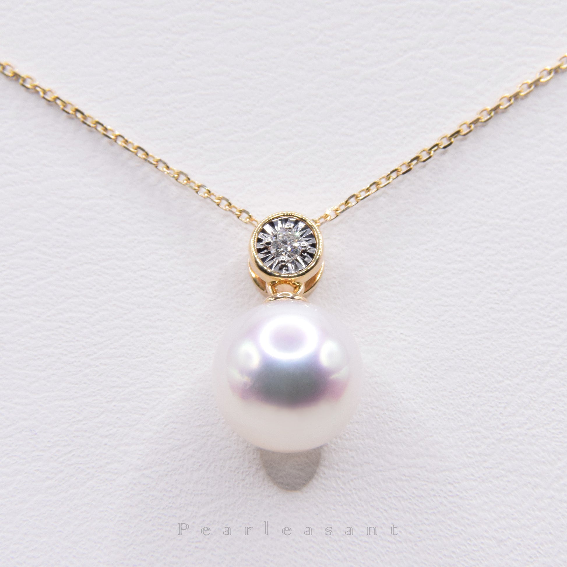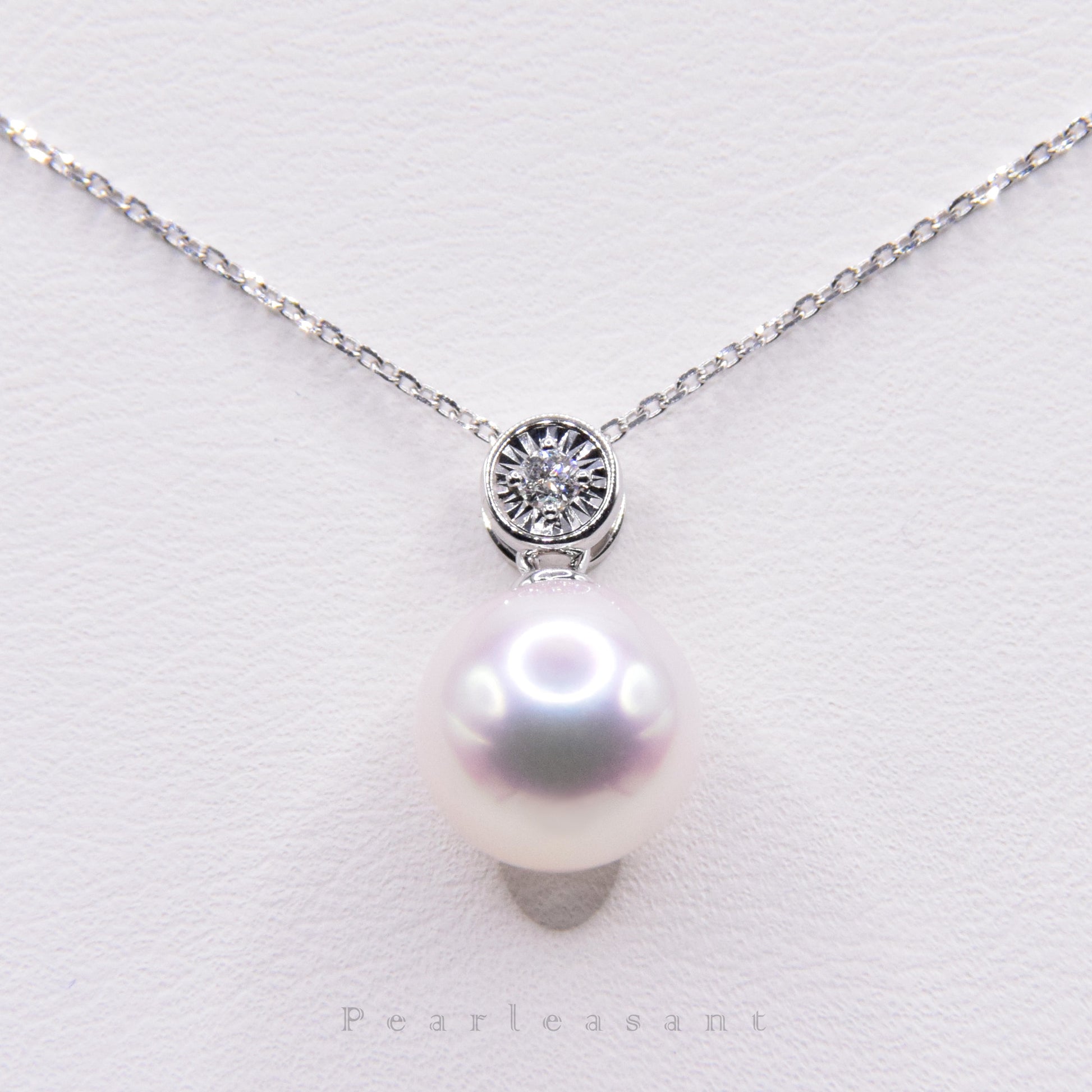 Hanadama Grade 8.5-9.0mm White Akoya Pearl Bubble Pendant with Certificate