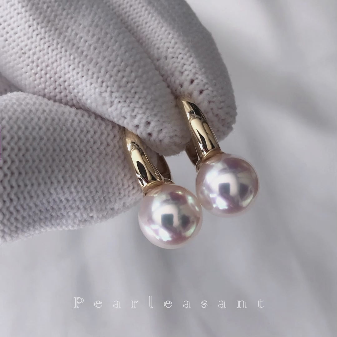 Hanadama Grade 8.5-9.0mm White Akoya Pearl Circle Bucket Earrings with Certificate