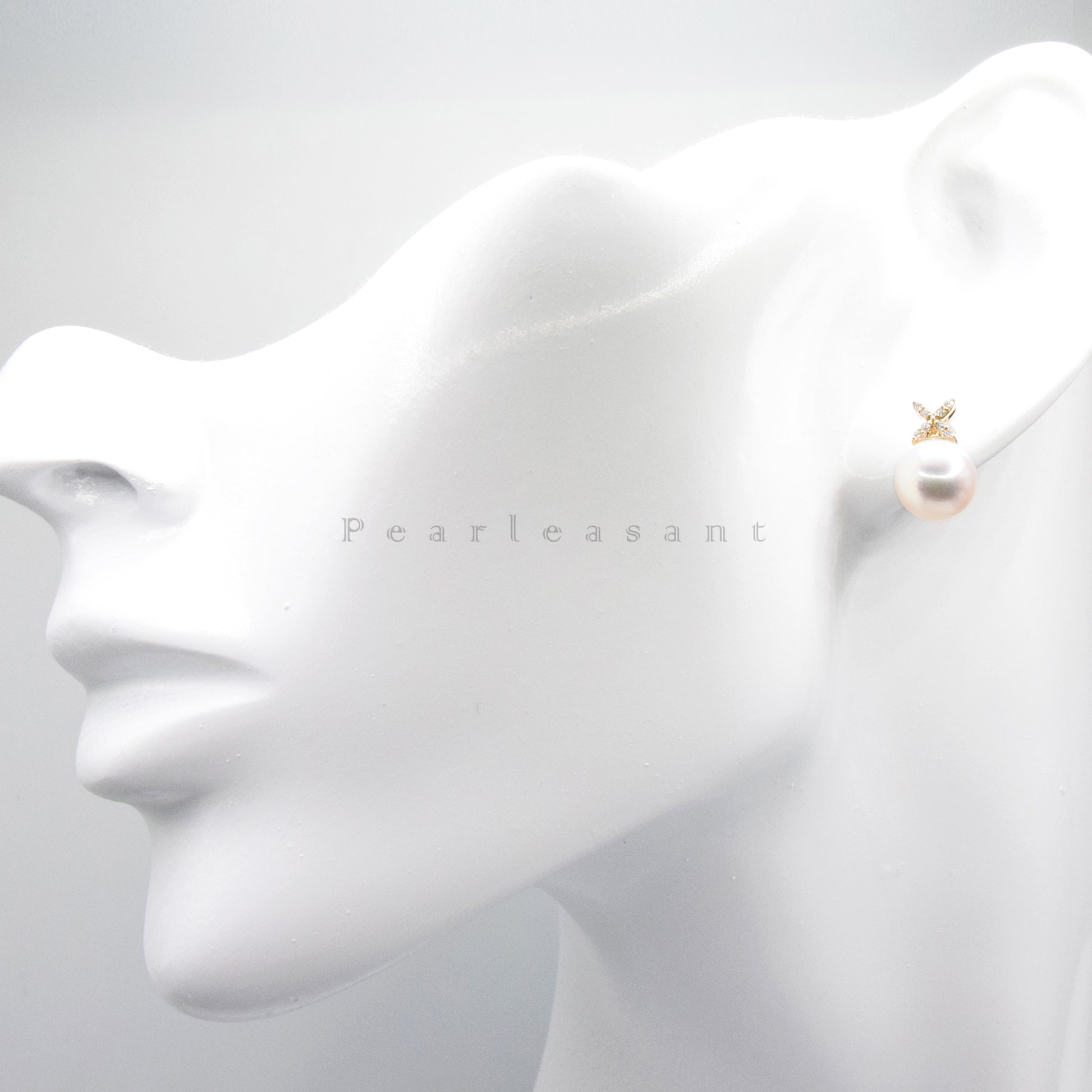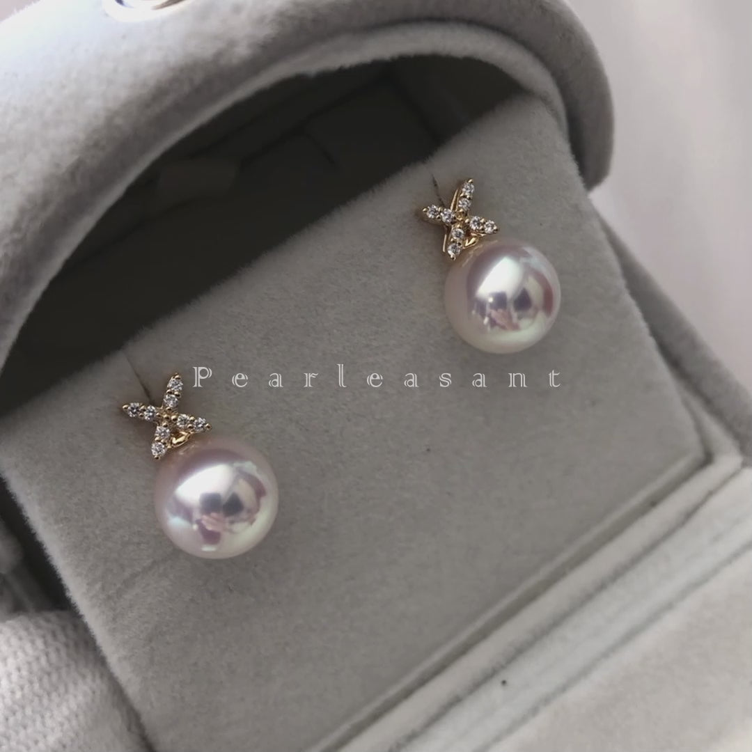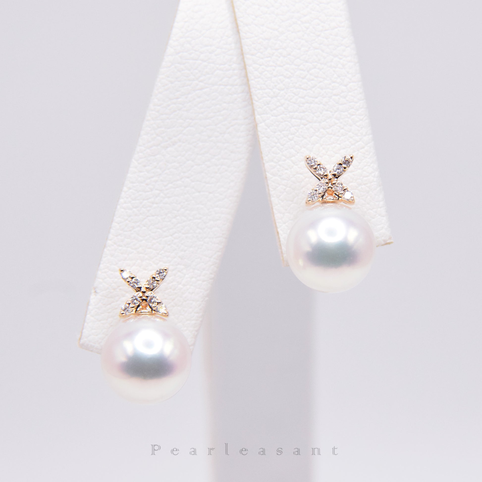 Hanadama Grade 8.0-9.0mm White Akoya Pearl Classic Clove Earrings with Certificate
