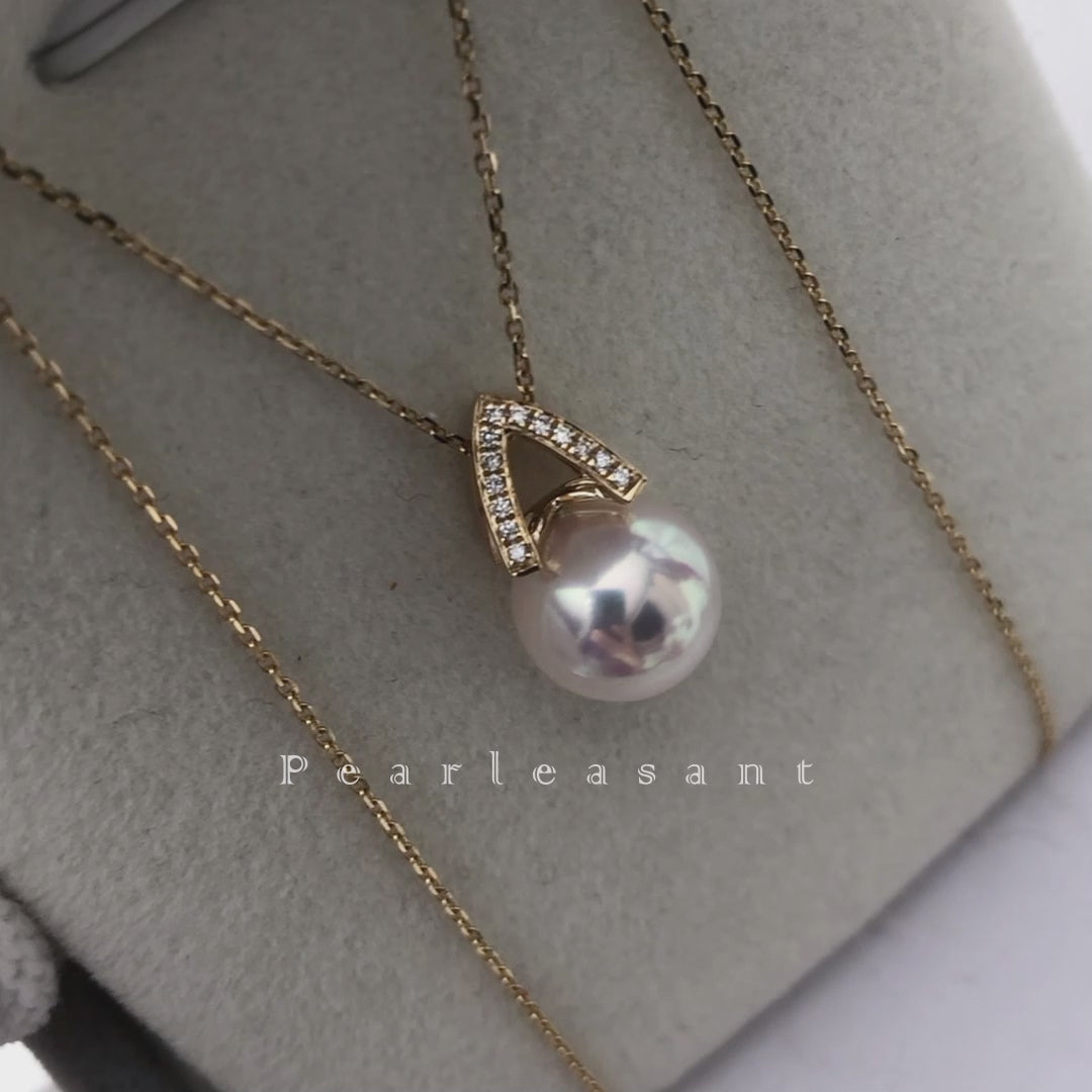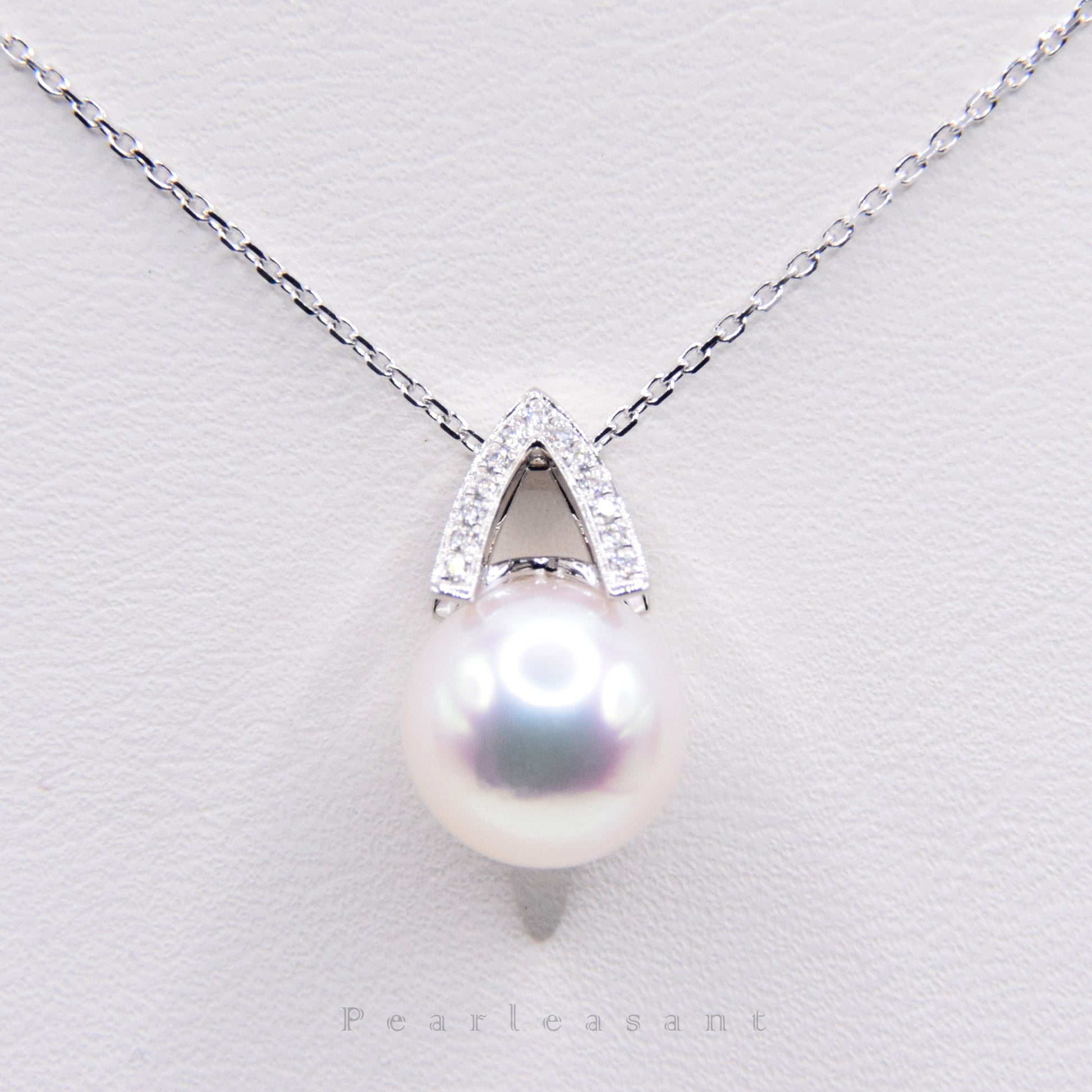 Hanadama Grade 8.5-9.0mm White Akoya Pearl Crown Pendant with Certificate