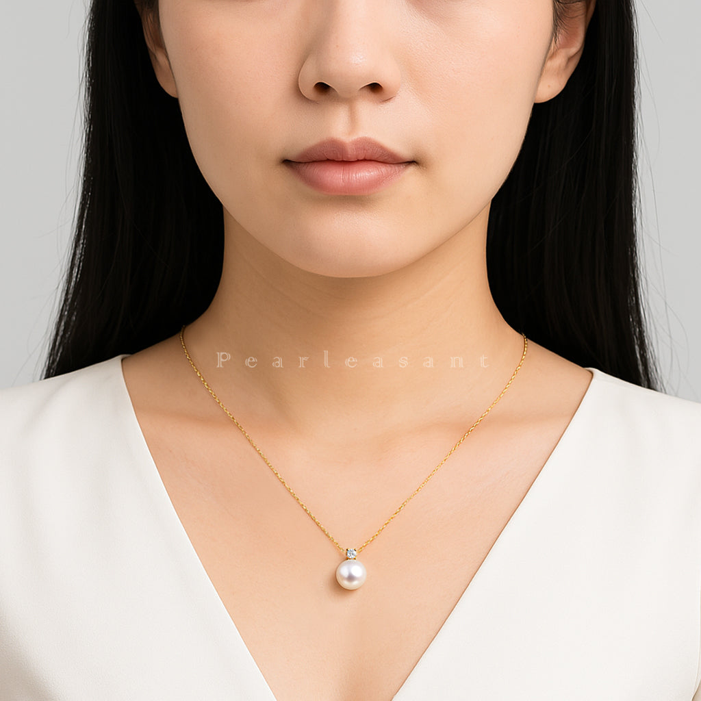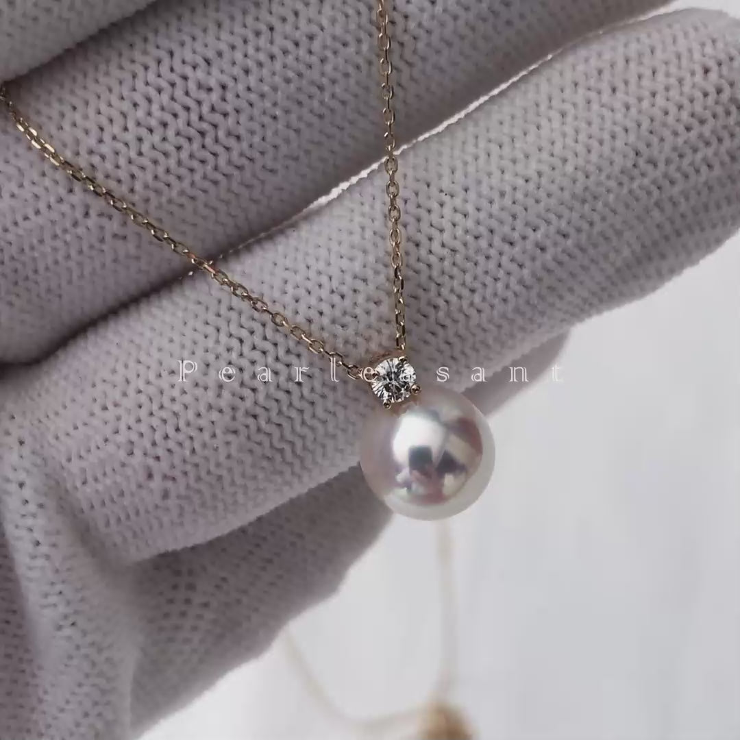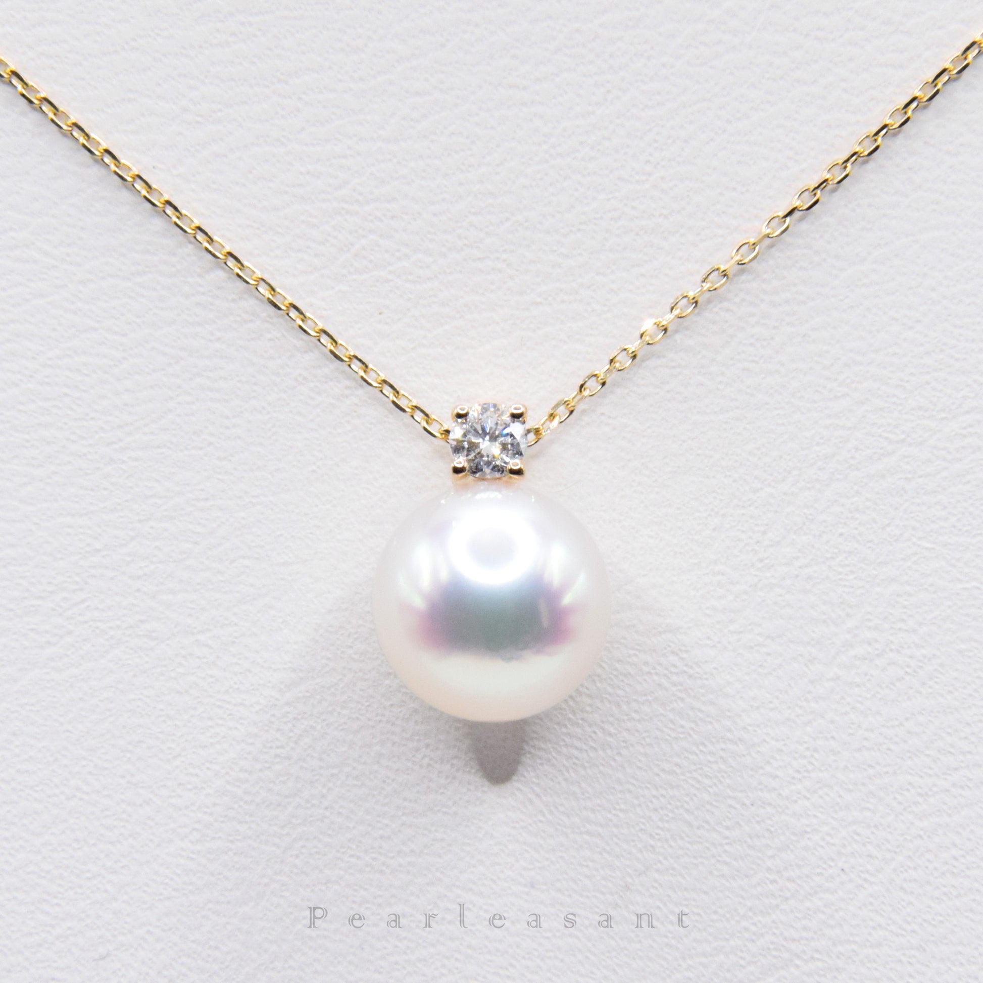 Hanadama Grade 8.0-9.0mm White Akoya Pearl Medium Princess Pendant with Certificate