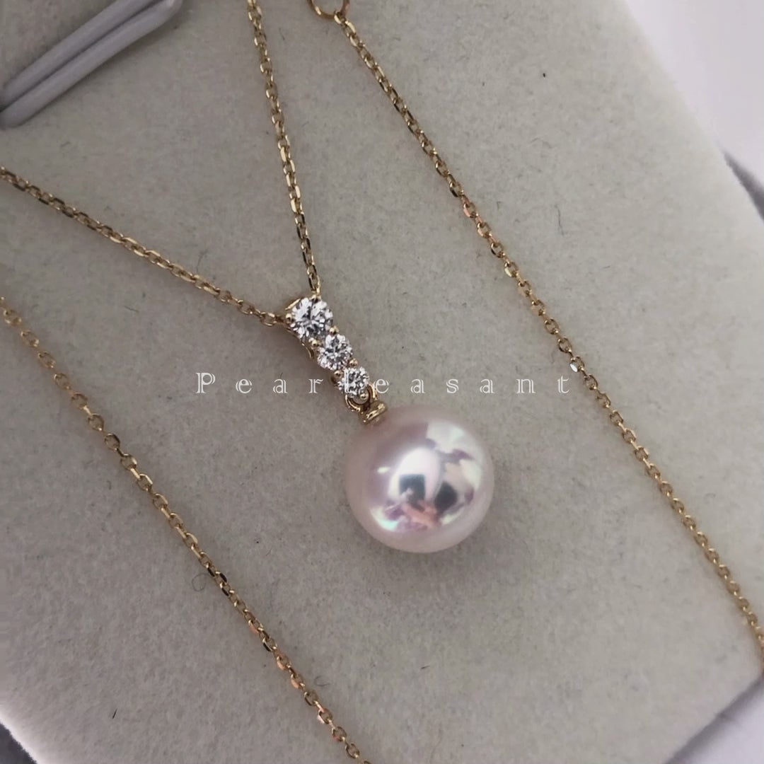 Hanadama Grade 8.5-9.0mm White Akoya Pearl Radiance Pendant with Certificate