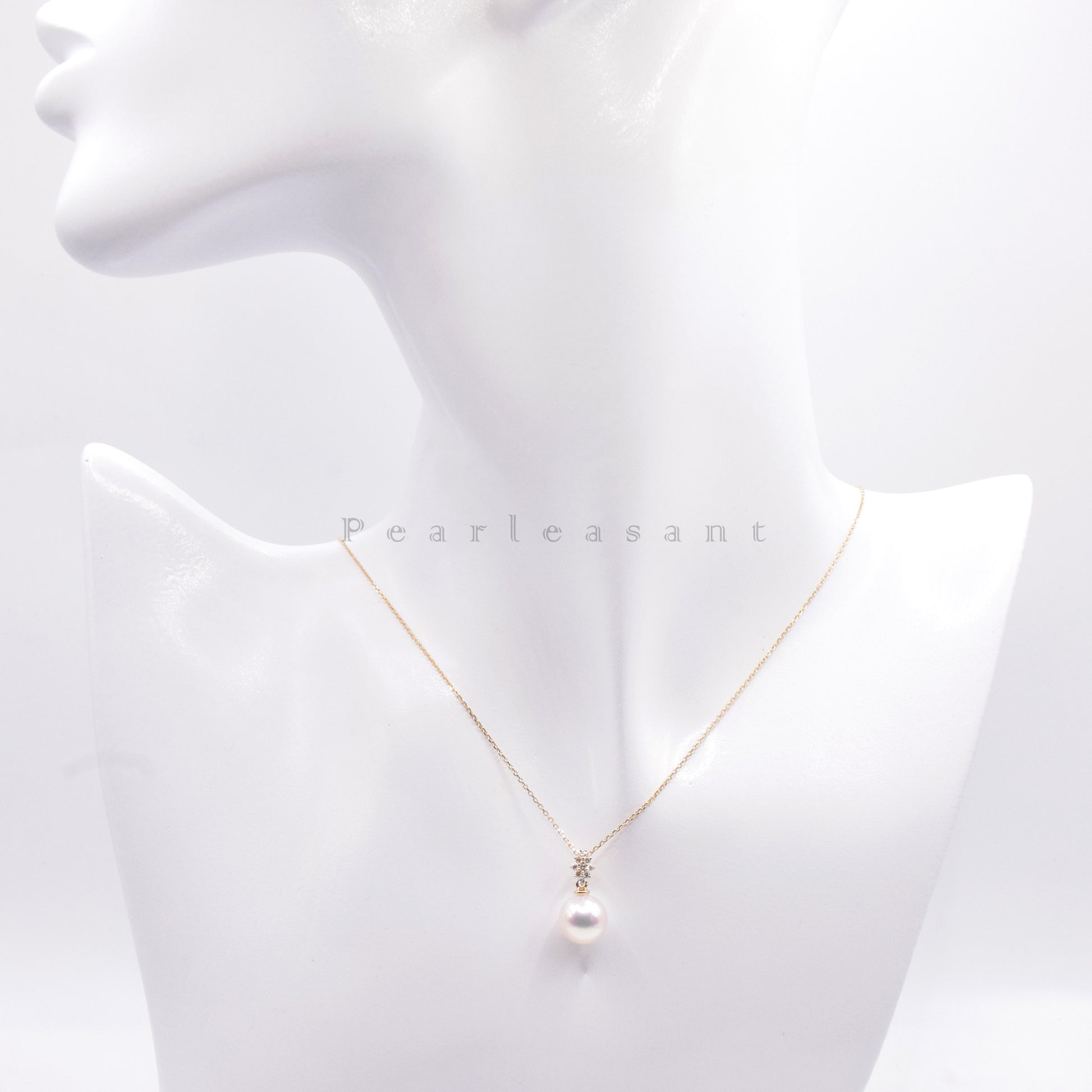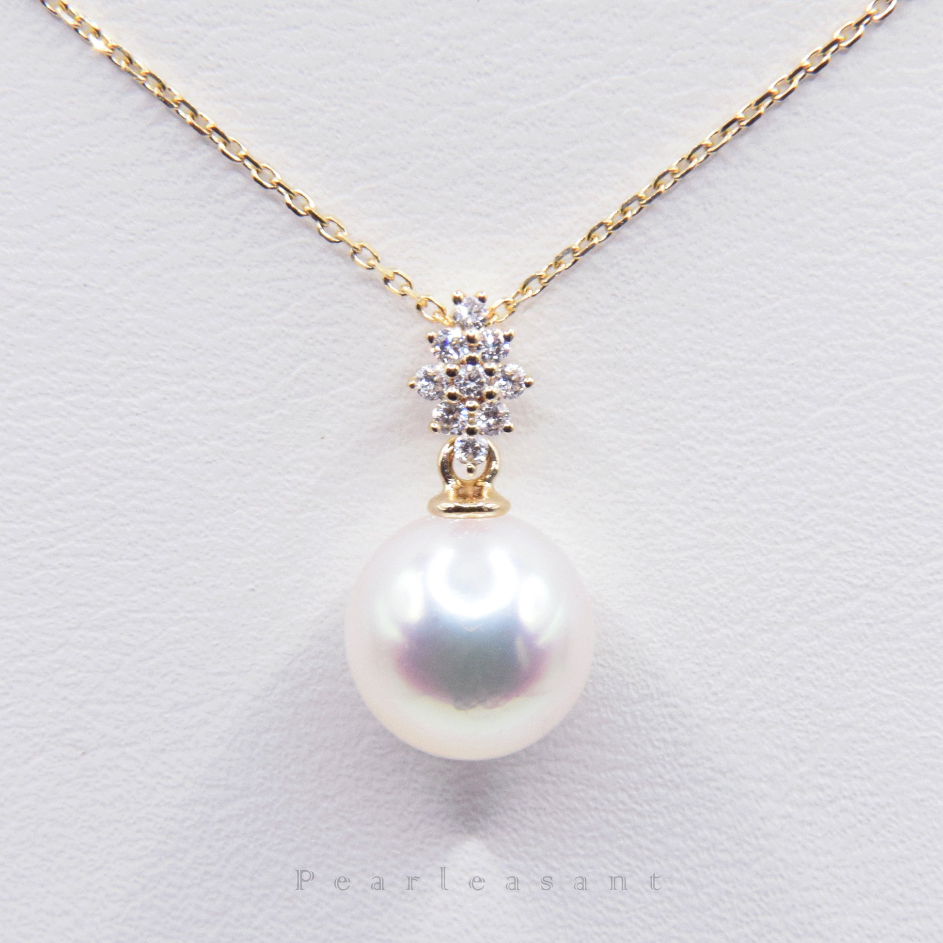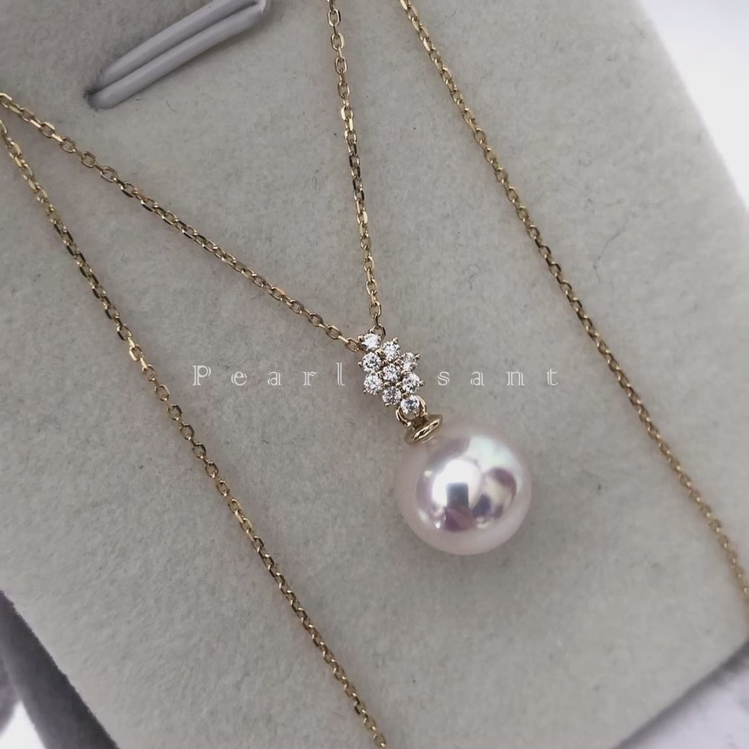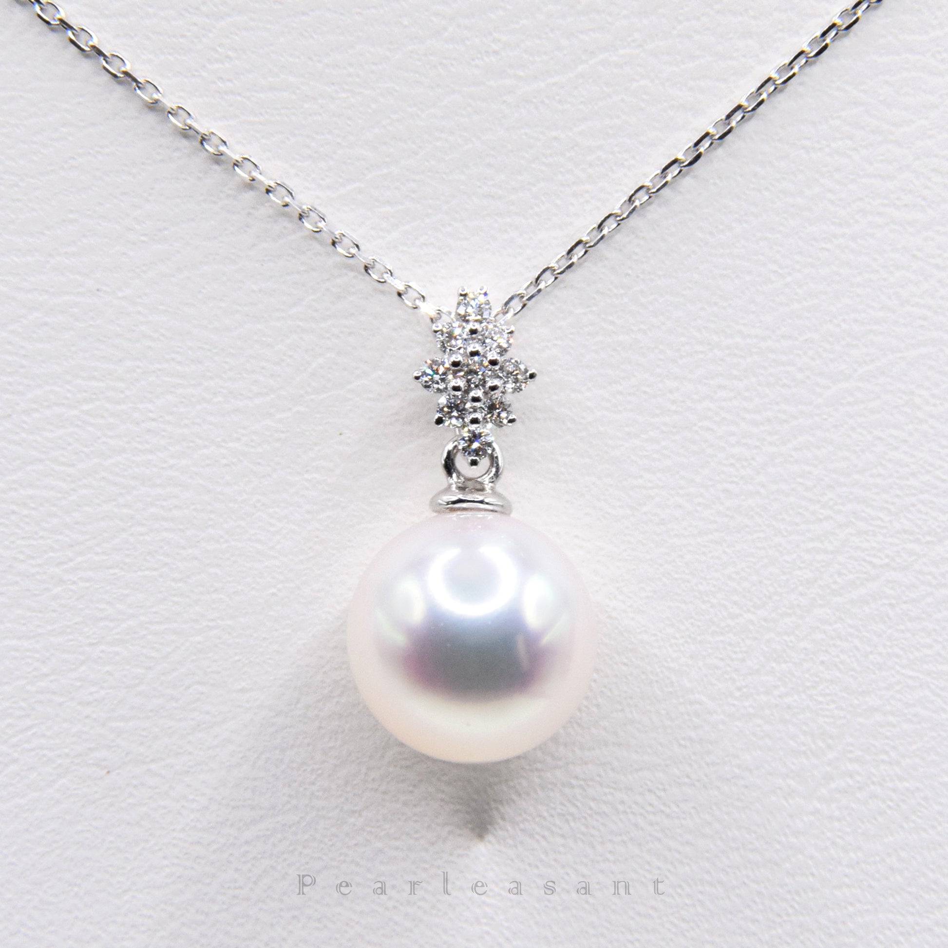Hanadama Grade 8.0-9.0mm White Akoya Pearl Rhombus Pendant with Certificate