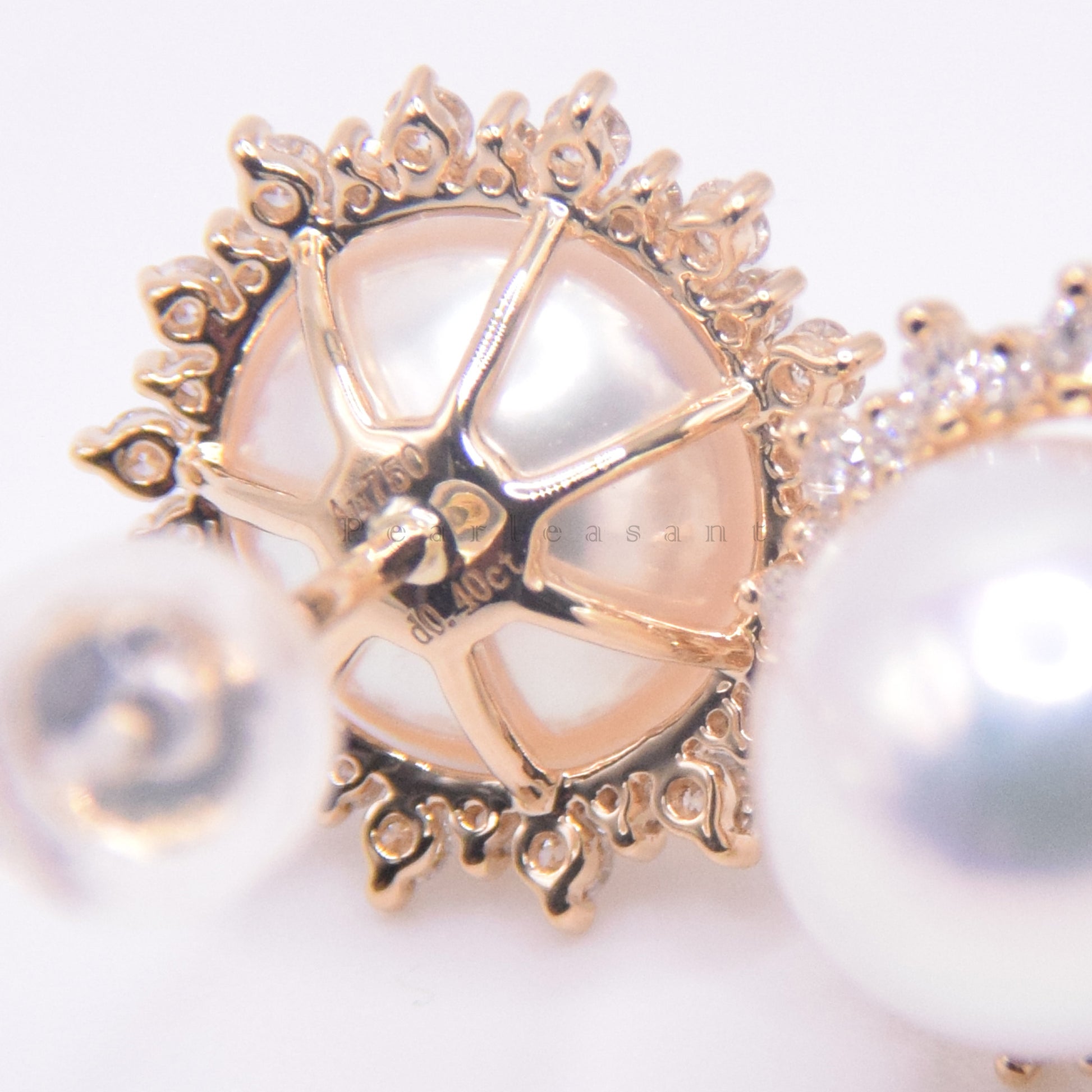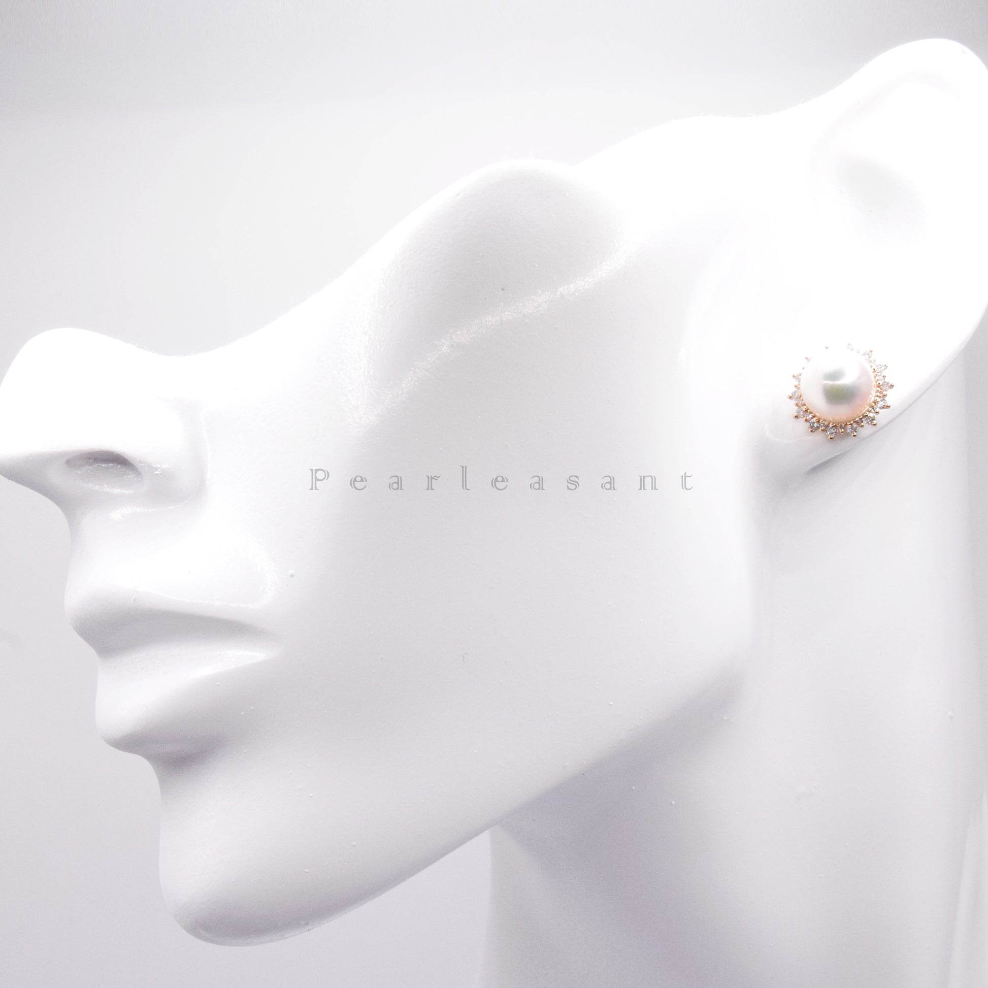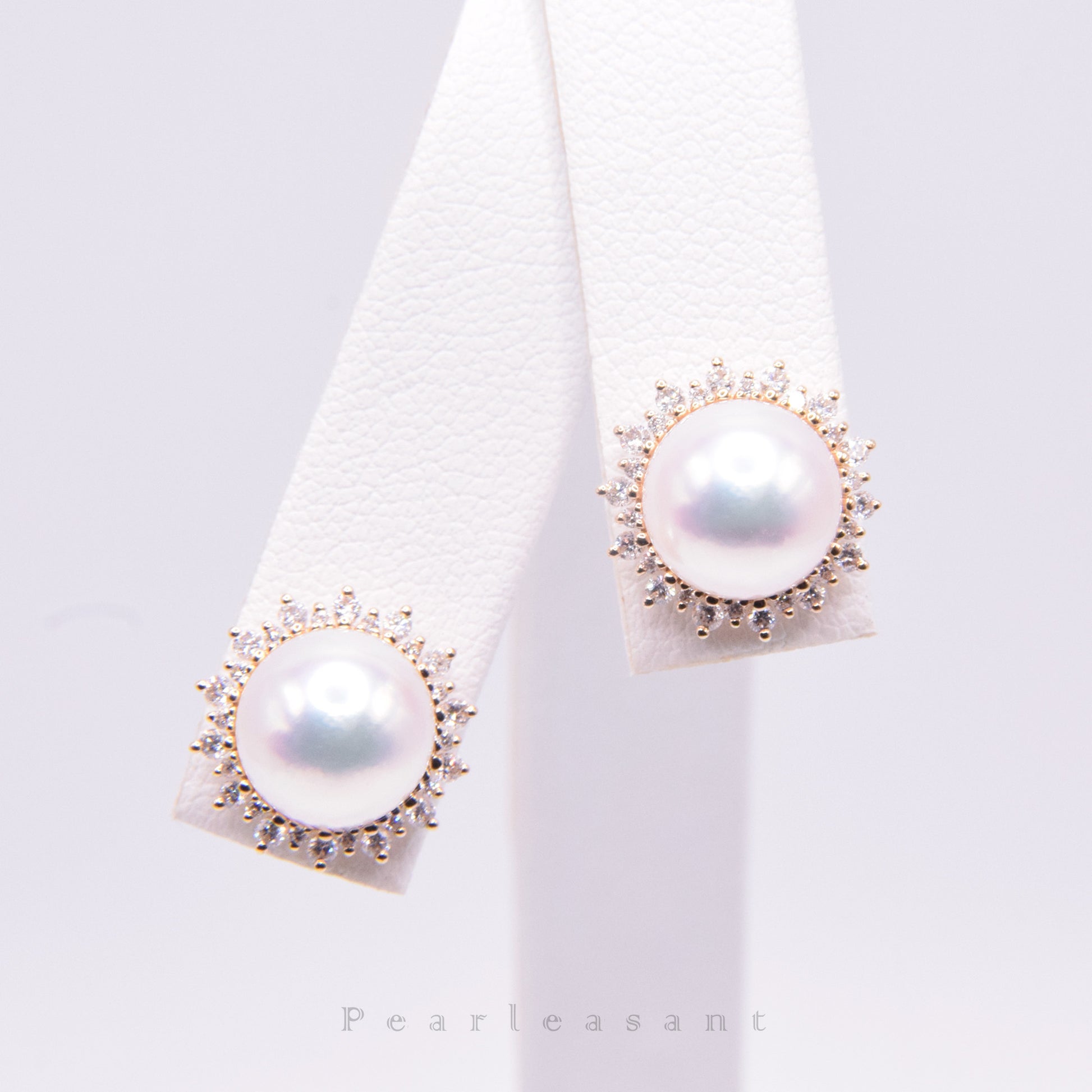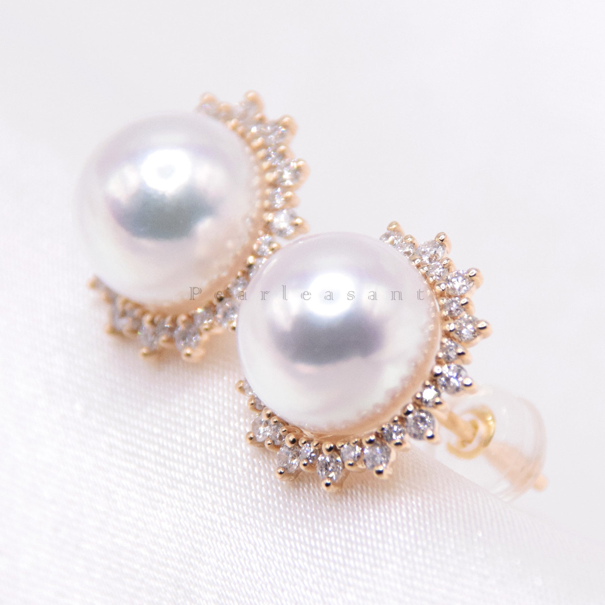 Hanadama Grade 8.5-9.0mm White Akoya Pearl Sunflower Diamond Earrings with Certificate
