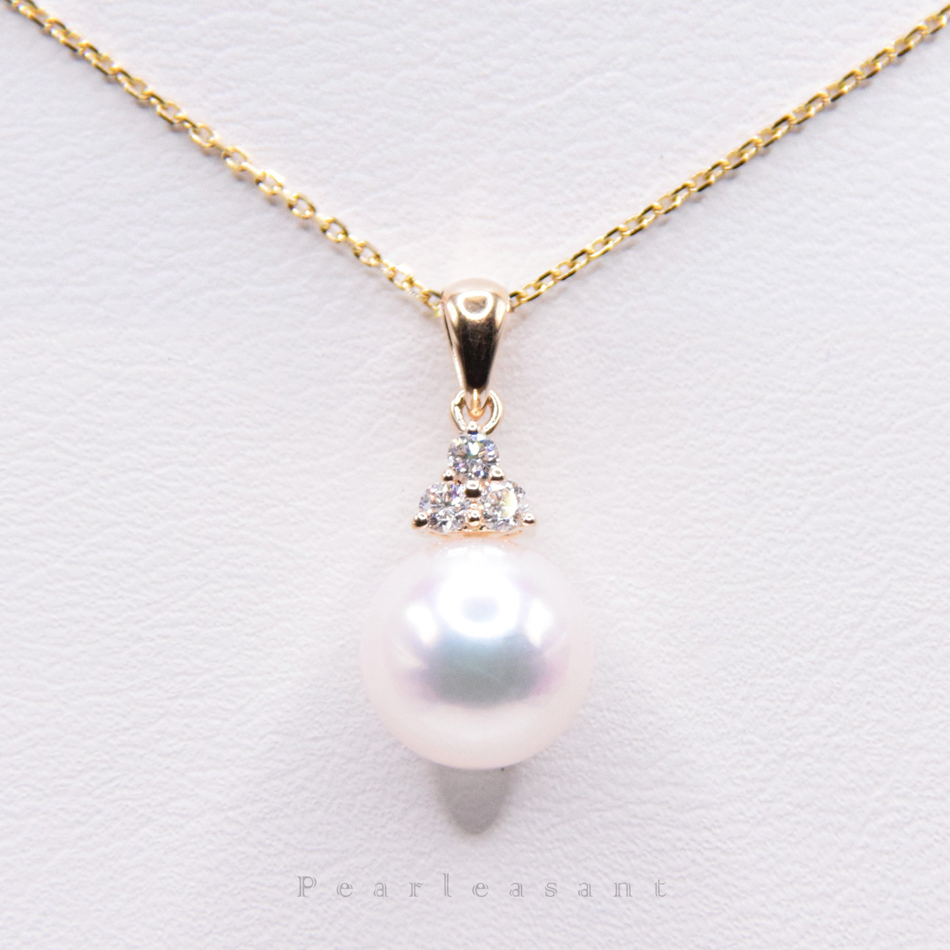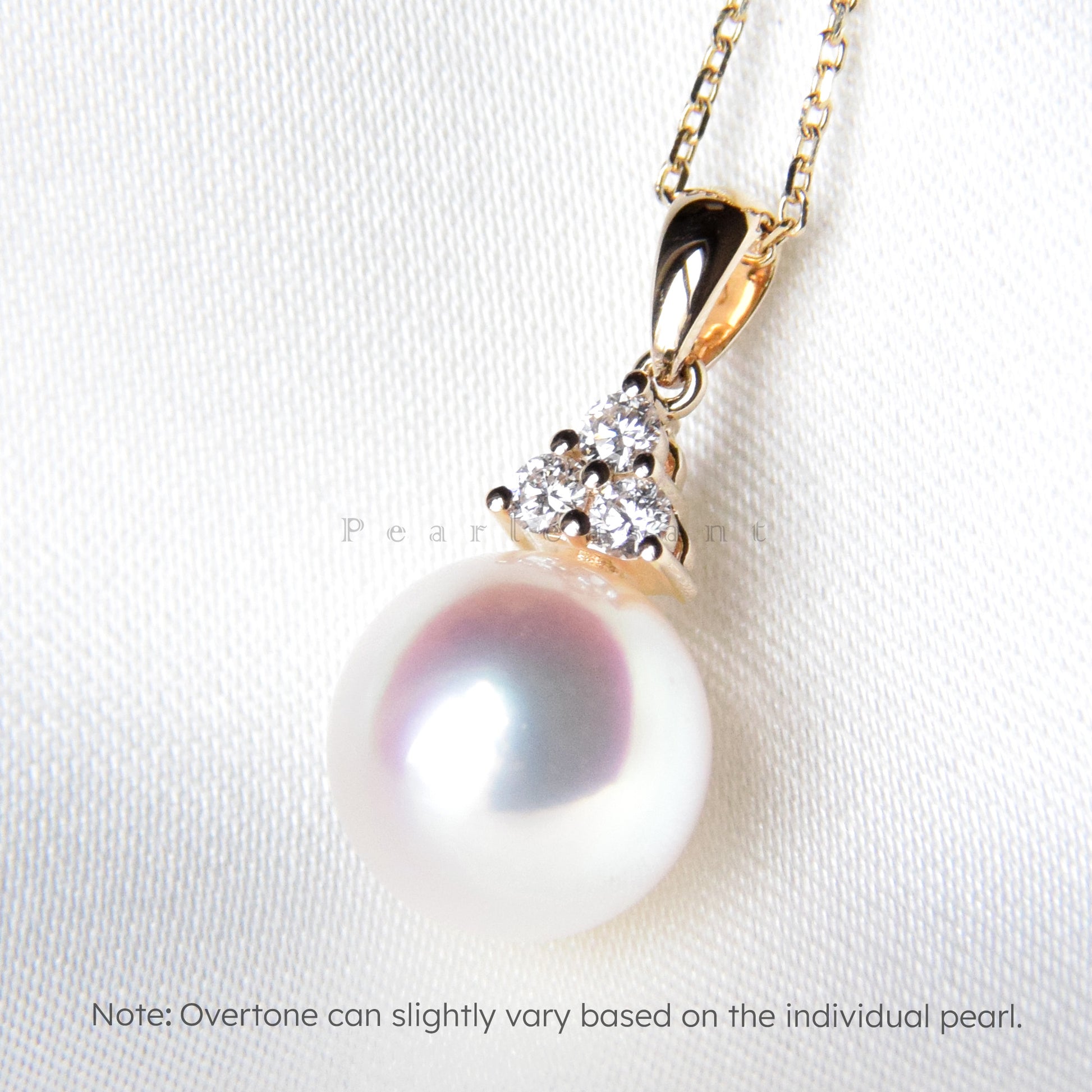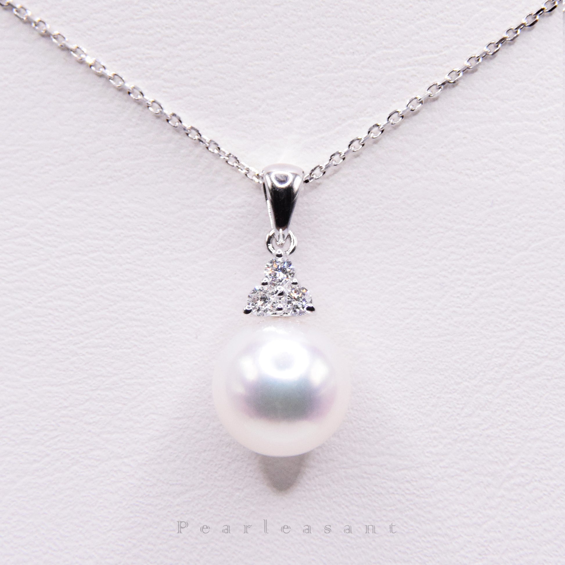 Hanadama Grade 8.5-9.0mm White Akoya Pearl Trio Diamond Pendant with Certificate