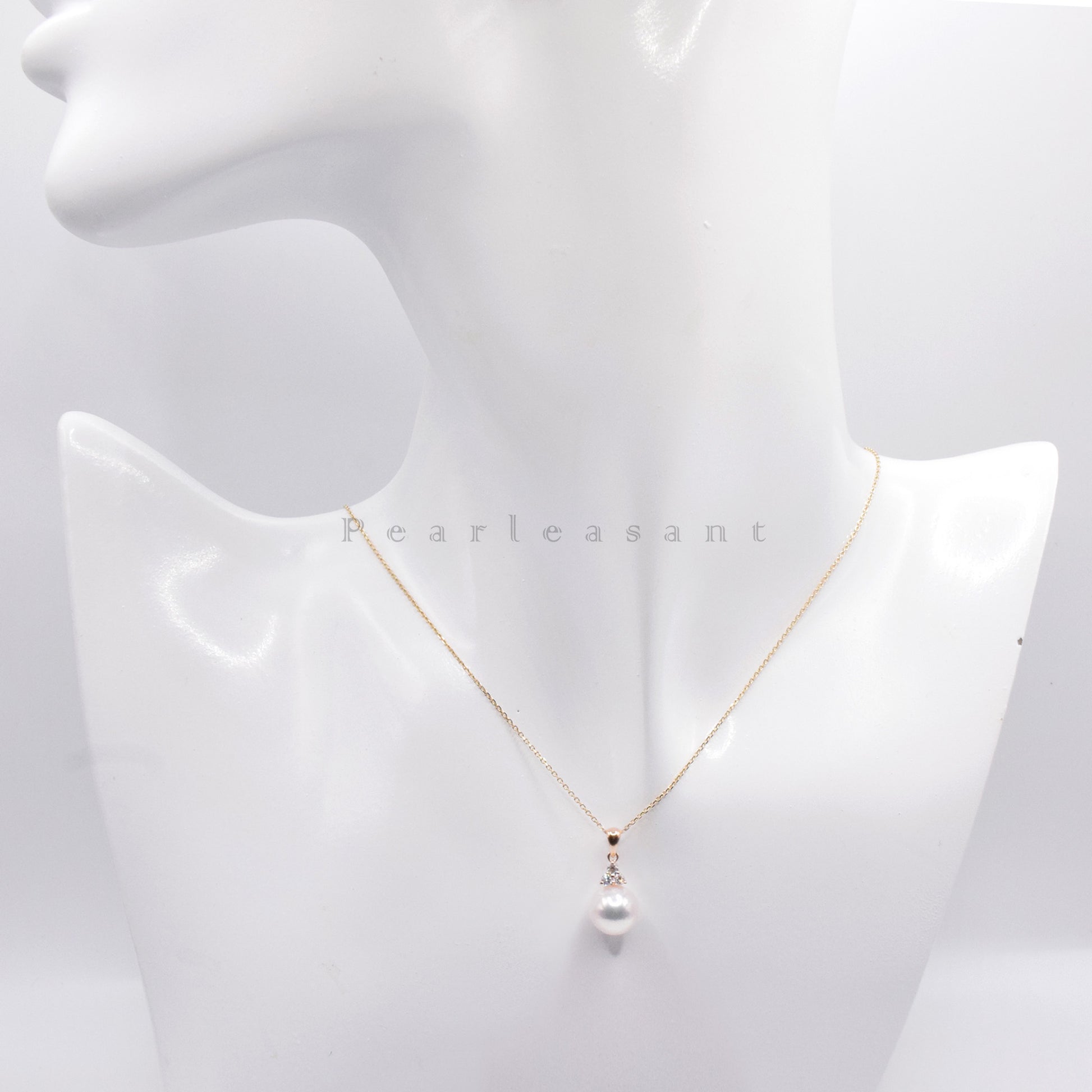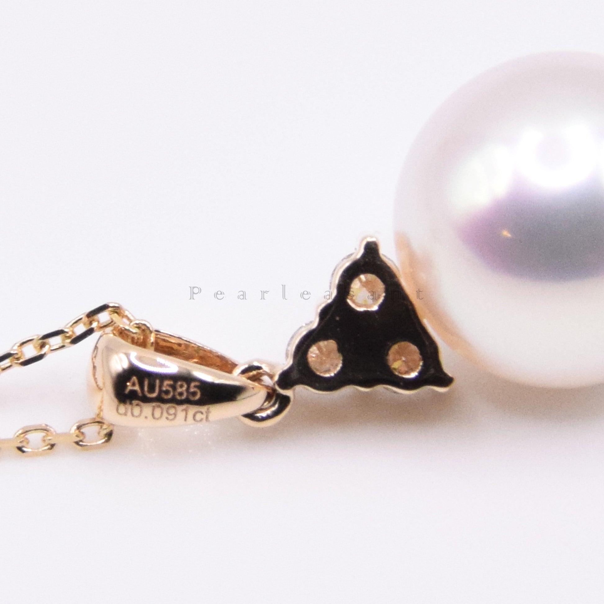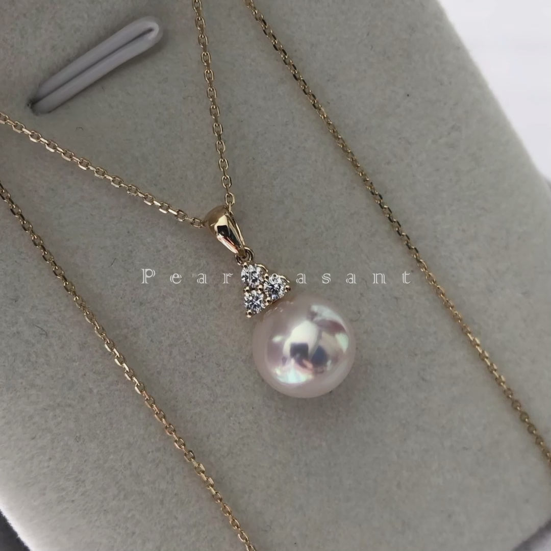 Hanadama Grade 8.5-9.0mm White Akoya Pearl Trio Diamond Pendant with Certificate