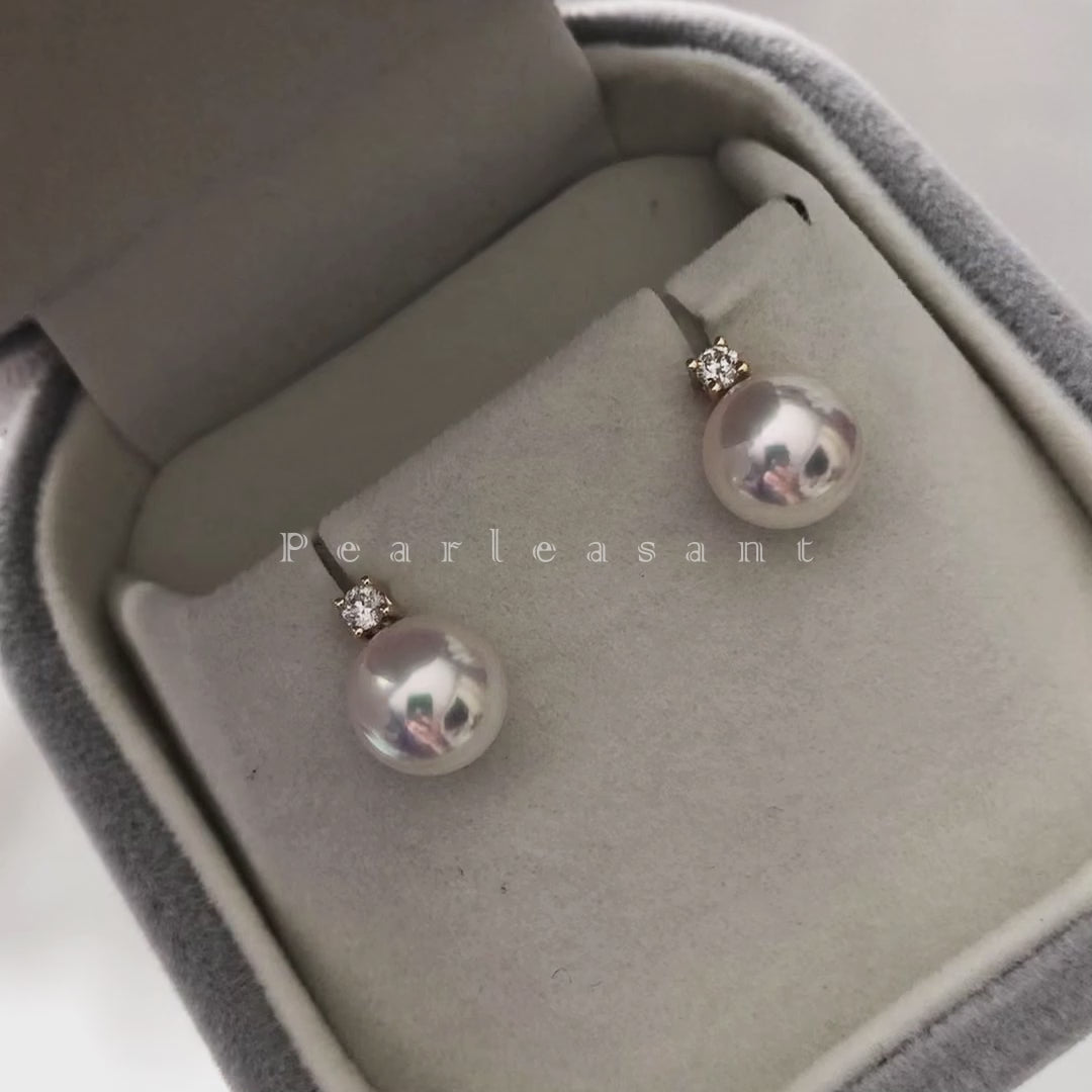 Hanadama Grade 8.0-8.5mm White Akoya Pearl Mini Princess Earrings with Certificate