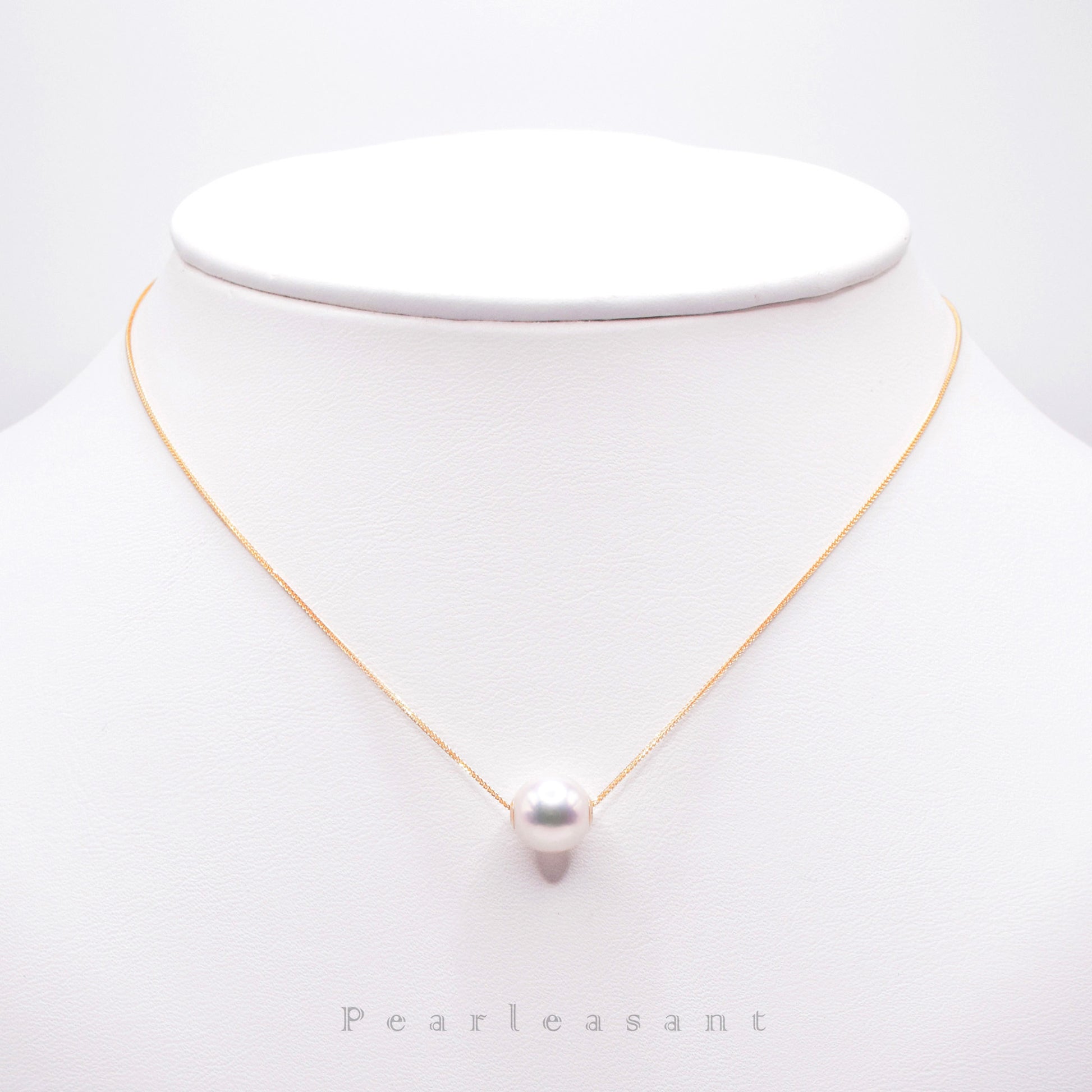 Hanadama Grade 8.5-9.0mm Natural White Akoya Pearl Floating Pendant with Certificate
