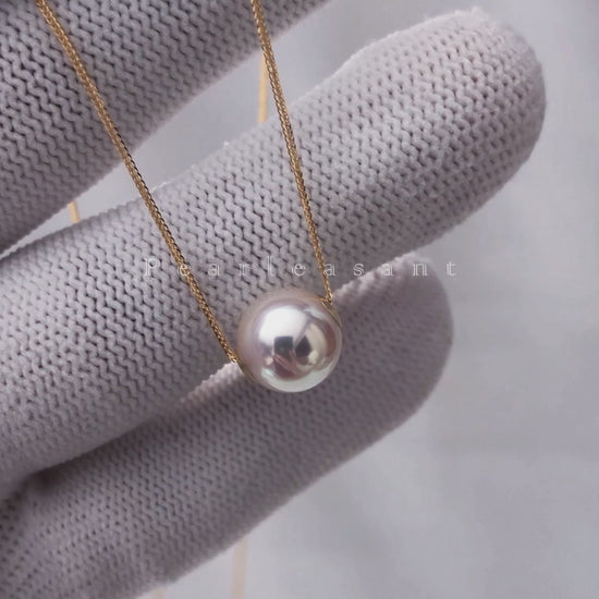Hanadama Grade 8.5-9.0mm White Akoya Pearl Floating Pendant