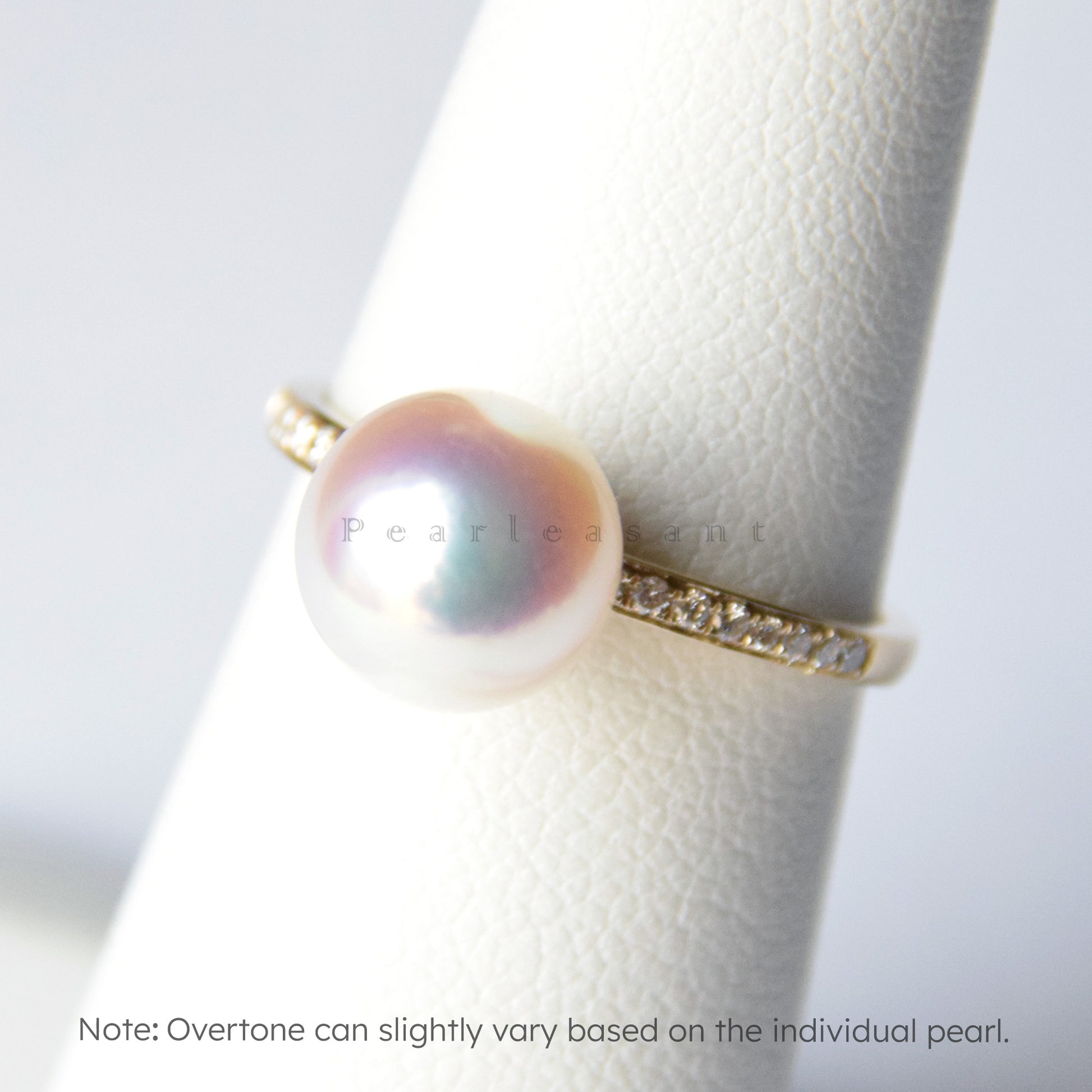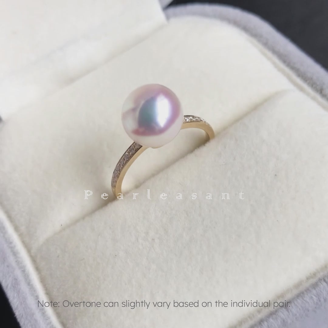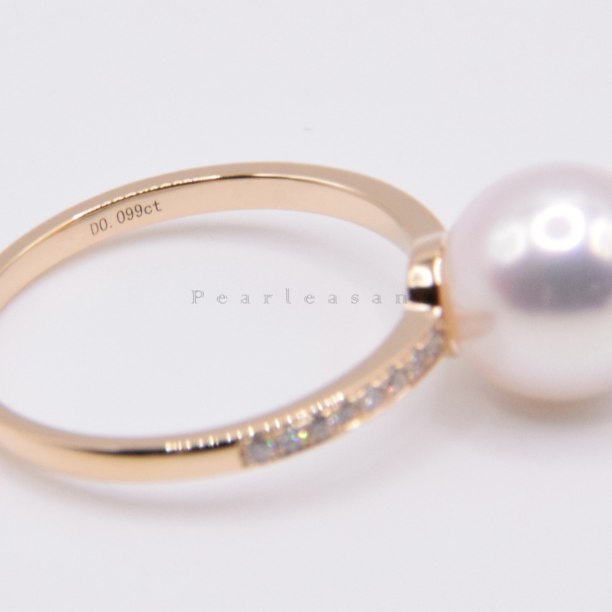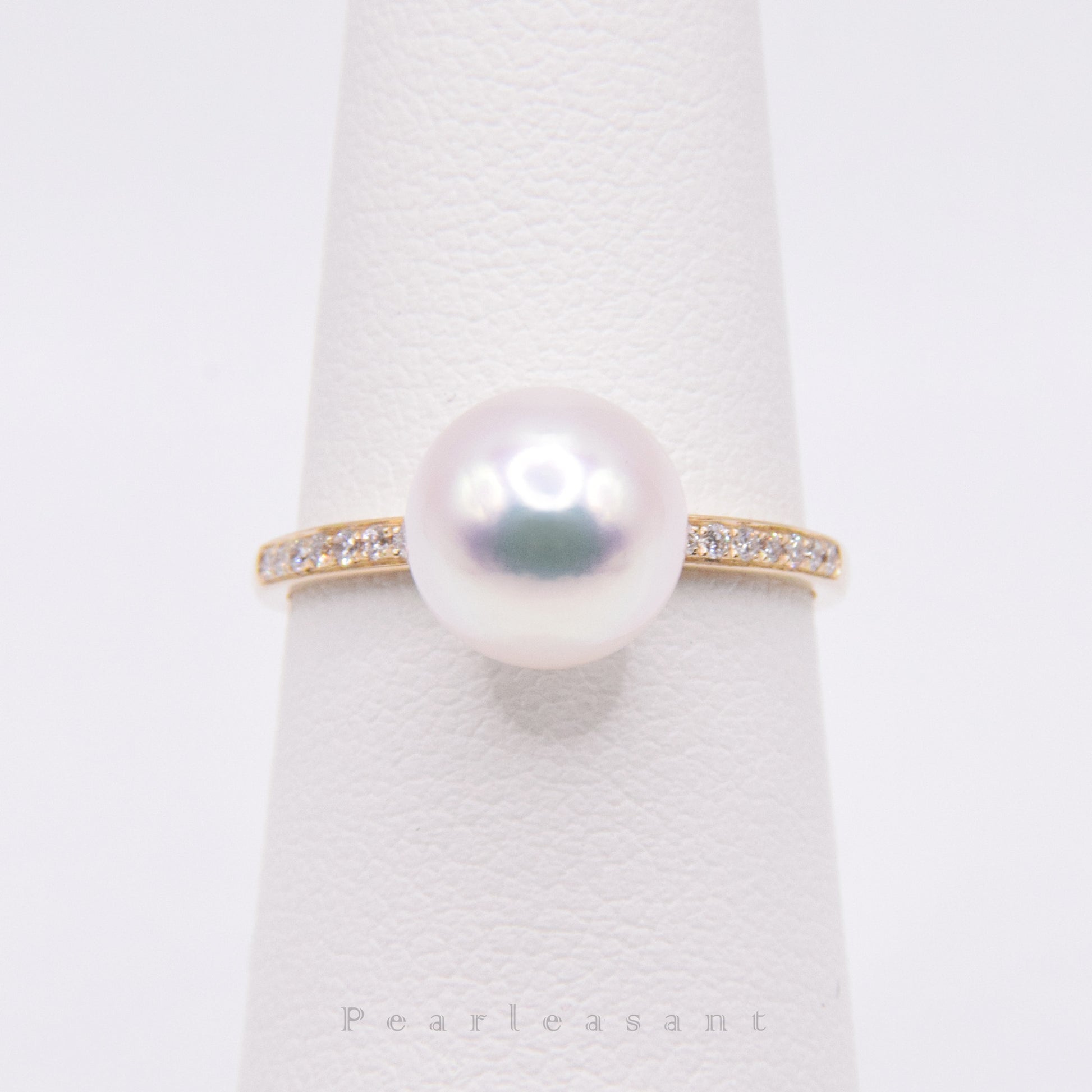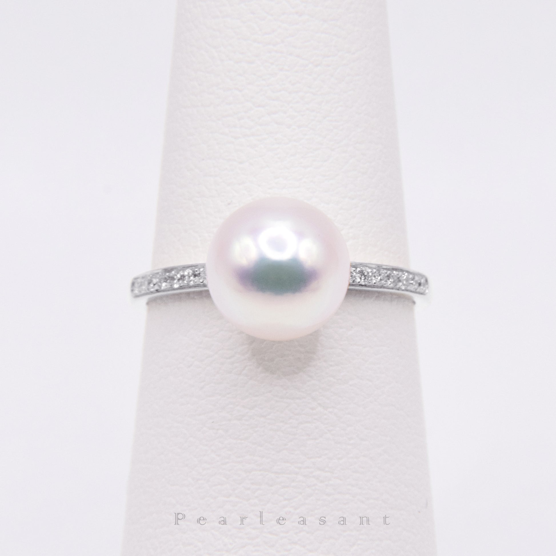 Hanadama Grade 8.0-8.5mm White Akoya Pearl Essential Diamond Ring with Certificate (Pre-order)
