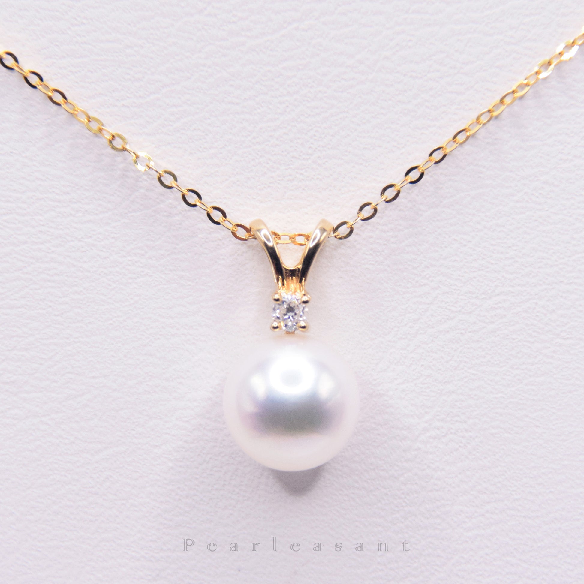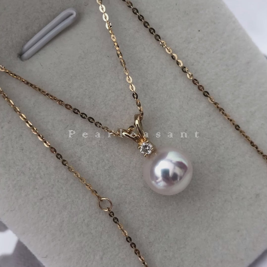 Hanadama Grade 8.5-9.0mm White Akoya Pearl Melody Pendant with Certificate