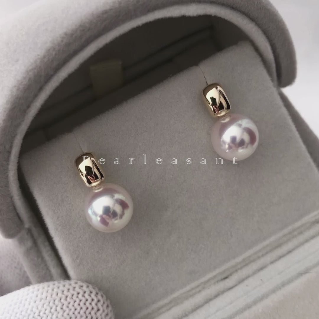 Hanadama Grade 8.0-9.0mm White Akoya Pearl Square Earrings with Certificate