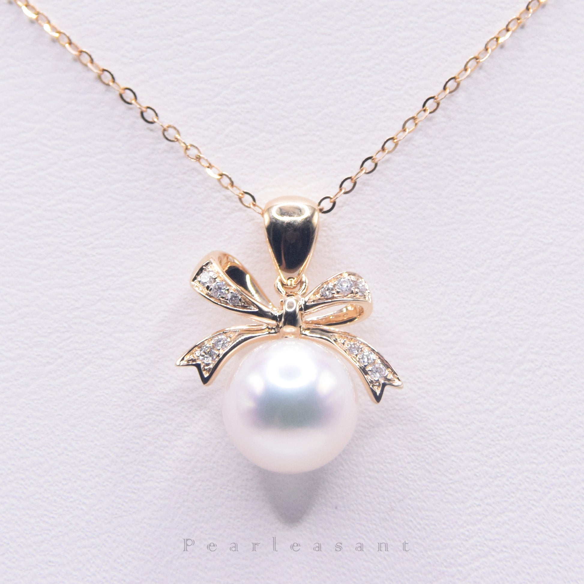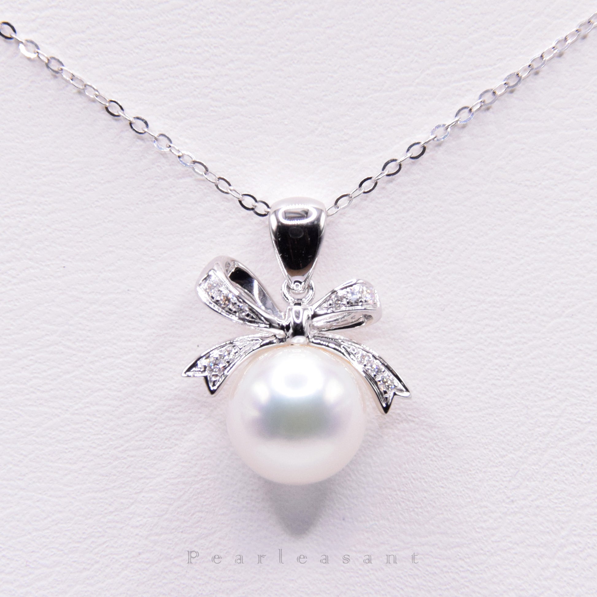 Hanadama Grade 8.5-9.0mm White Akoya Pearl Bowtie Pendant with Certificate
