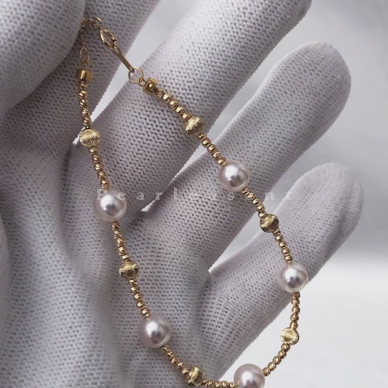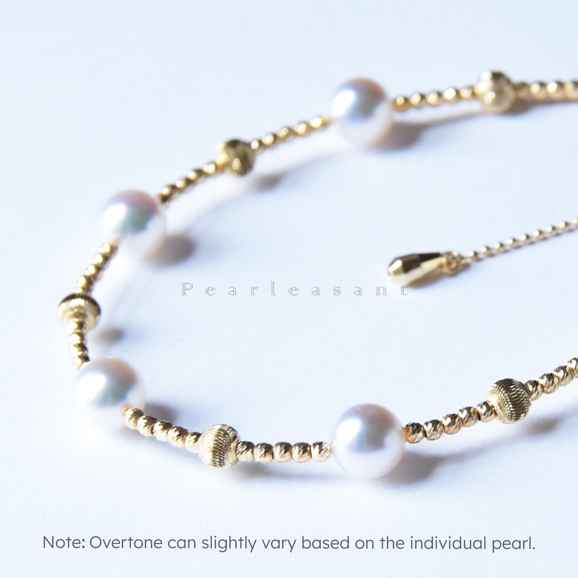 Hanadama Grade Five 6.5-7.0mm White Akoya Pearls Station Bracelet
