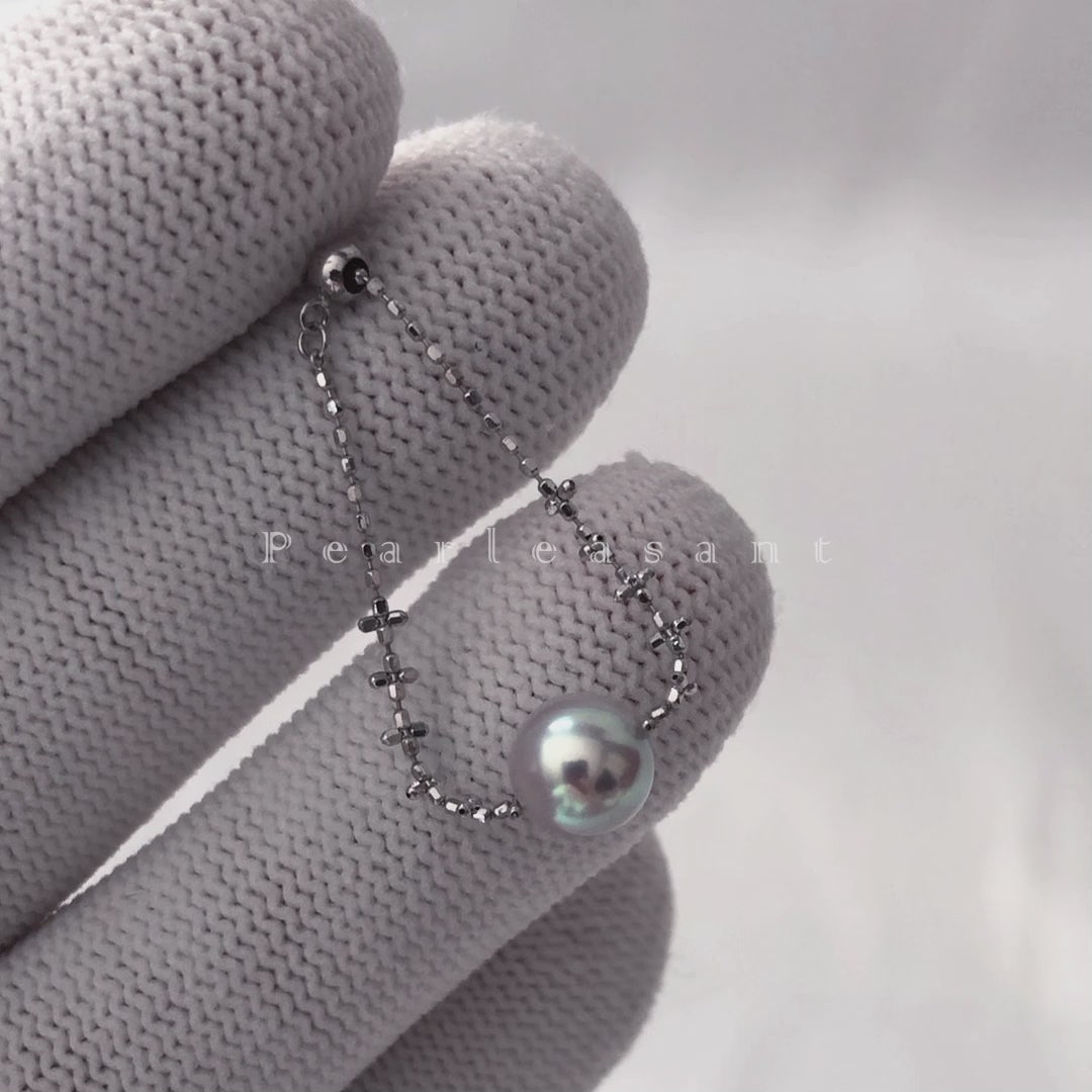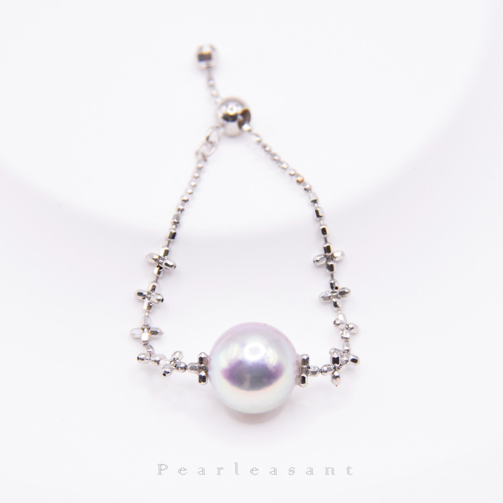 Madama Color Super Luster 6.5-7.0mm Blue Akoya Pearl Adjustable Cross Chain Ring