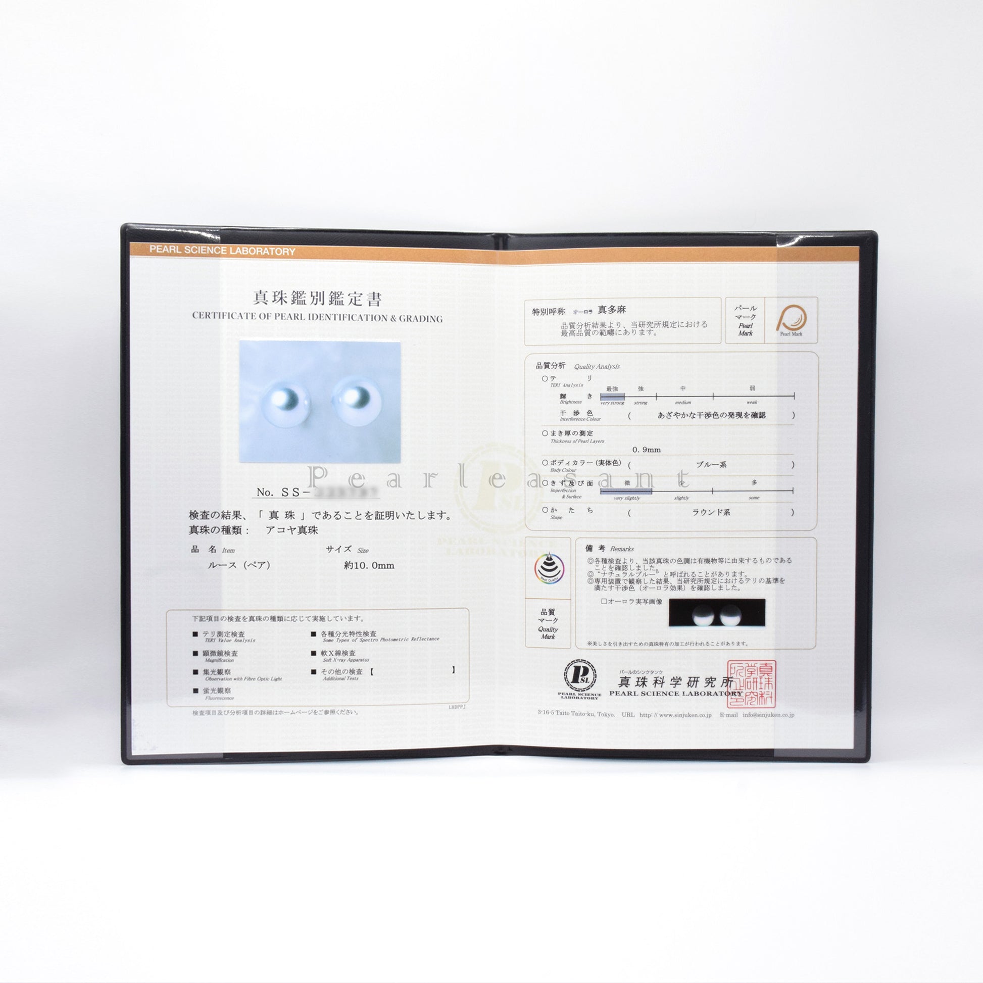 Certificate: Madama 真多麻 certified by Pearl Science Laboratory